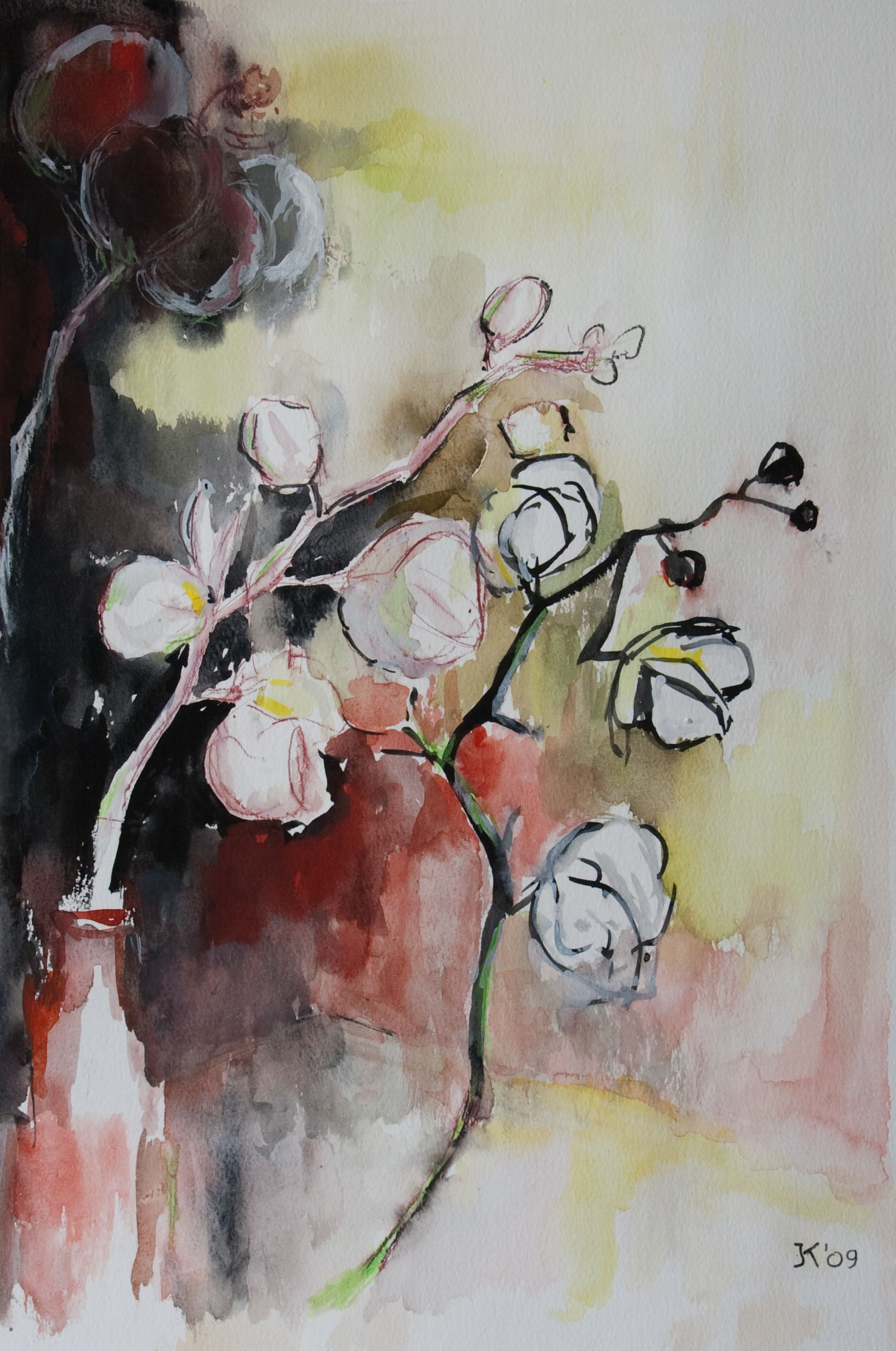 toepassing met aquarel en aquarelpotlood en gouache. 300 grams Bockingford papier. Werkstuk uit een serie