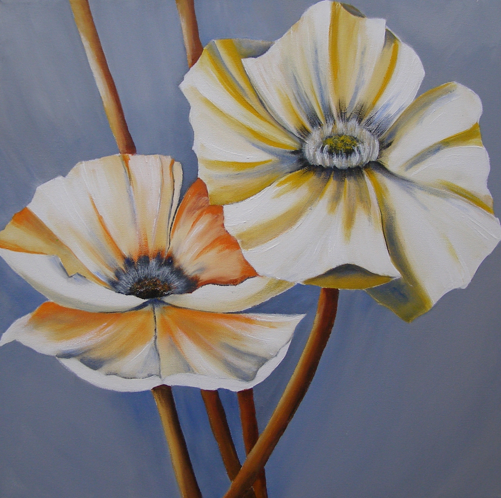 Gestyleerde papavers, onderdeel van een drieluik, in opdracht geschilderd.