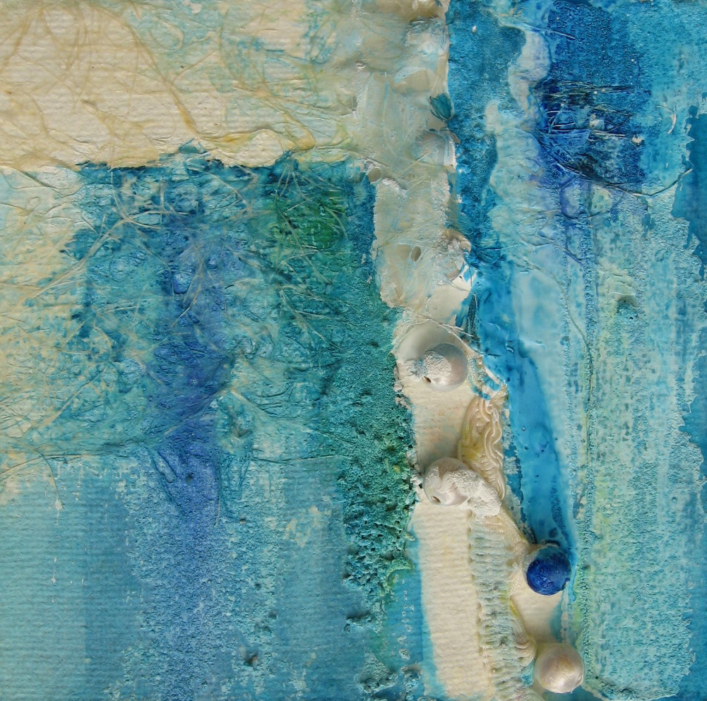 Mixed media acryl, gel, zand, papier, cocoshaar in plexiglas box