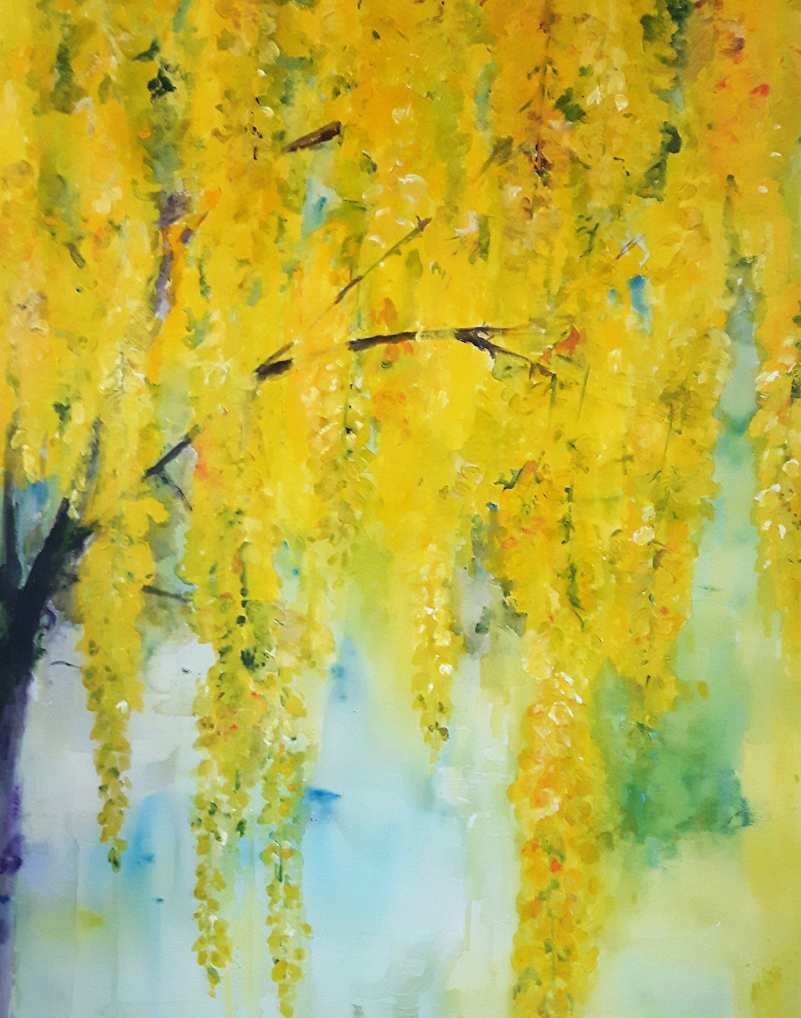 Oranje Geel Acryl Paars Goud Groen Bloemen Doek Regen Zomer Linnen Voorjaar Verjaardag Verf