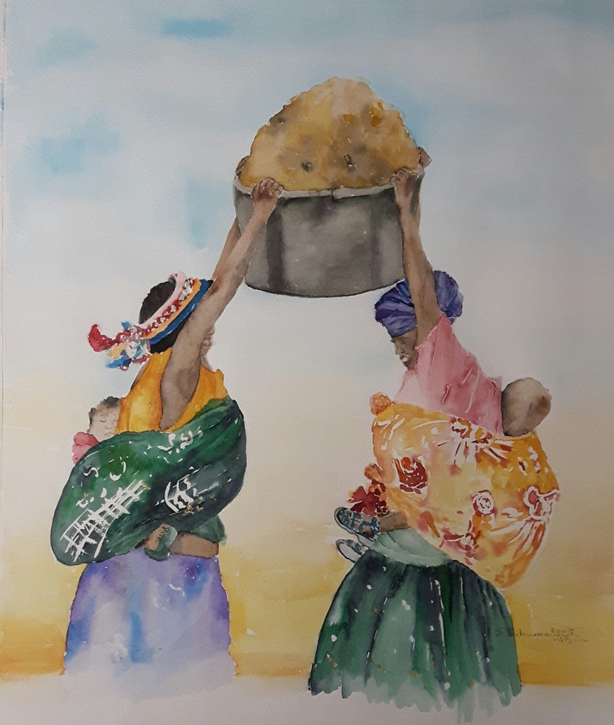 Wit Vrouwen Moeders Grijs Rood Oranje Geel Zwart Blauw Rose Paars Groen Baby Afrika Papier Aquarel Voedsel Kinderen Mand