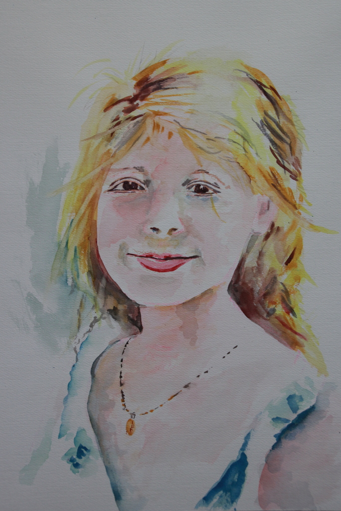 meisje in lichte aquarel kleuren ingelijst . te zien of bezichtigen Beukenlaan 1 Beukenhof zaal Hyachint.