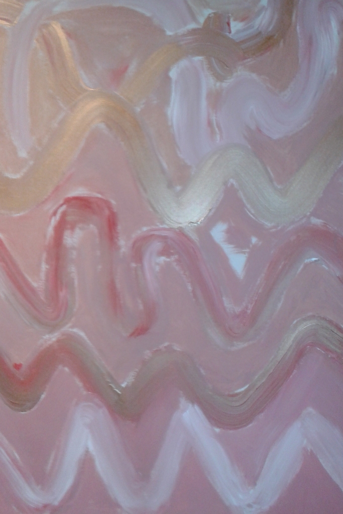 De liefde dringt me tot het maken van een groot schilderij met koper- en goudverf. De liefde dringt me om controle los te laten.