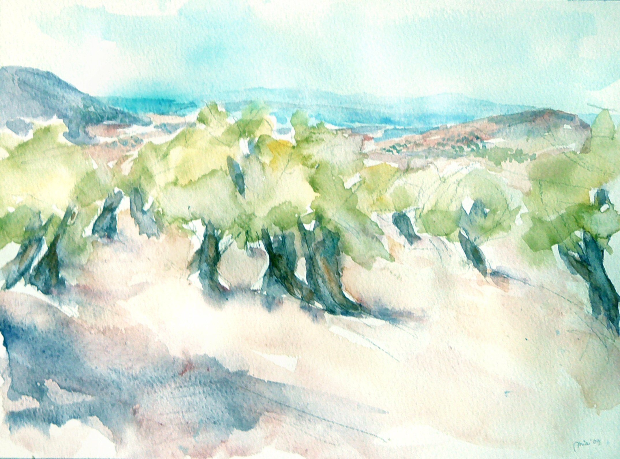 Landschap Aquarel Natuur Spanje Impressie Olijfbomen