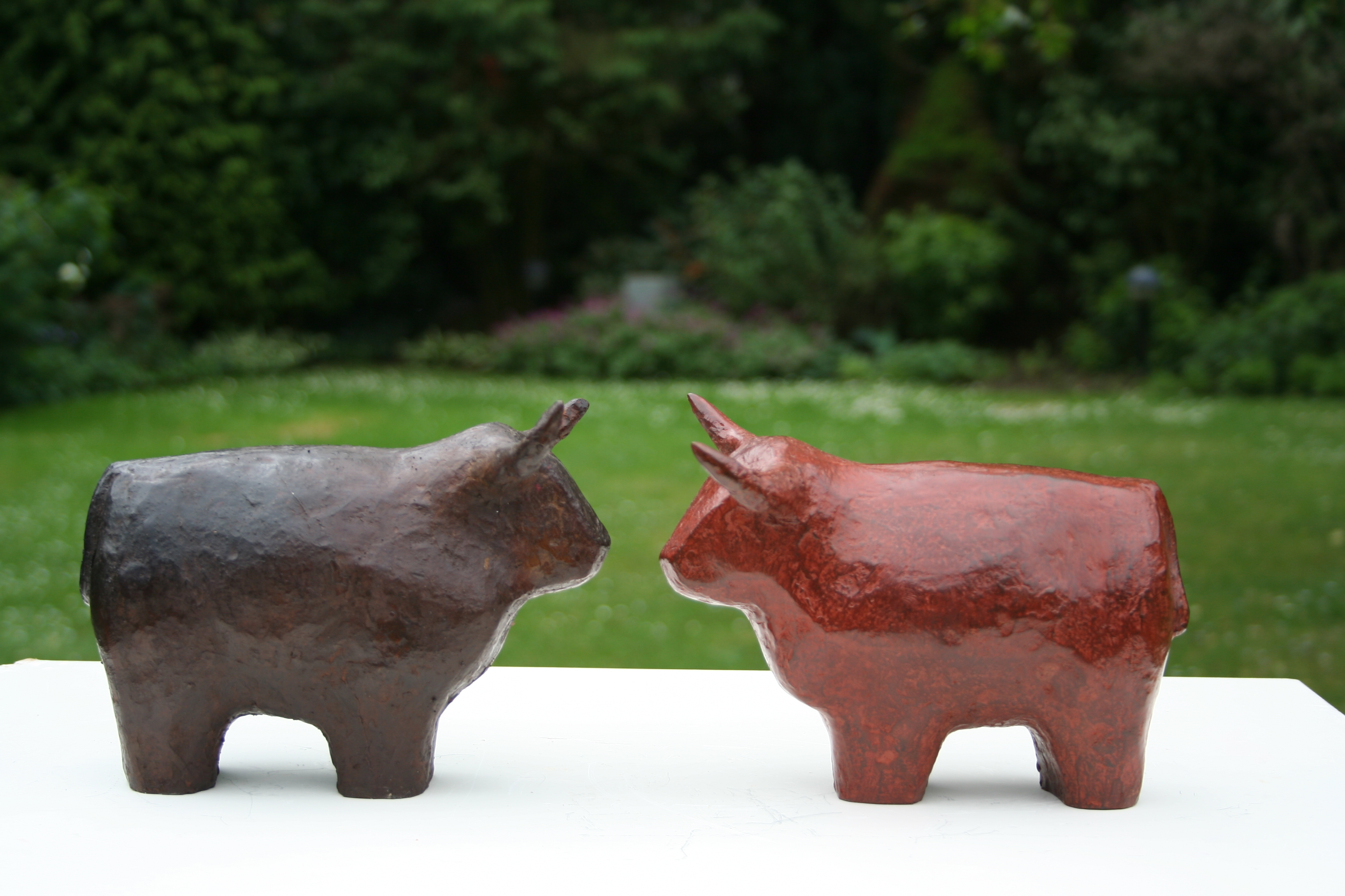 Bronzen beeld van schotse hooglander, licht geabstraheerd. Verkrijgbaar in verschillende kleuren. Meerdere exemplaren versterken elkaar. (prijs is per stuk)