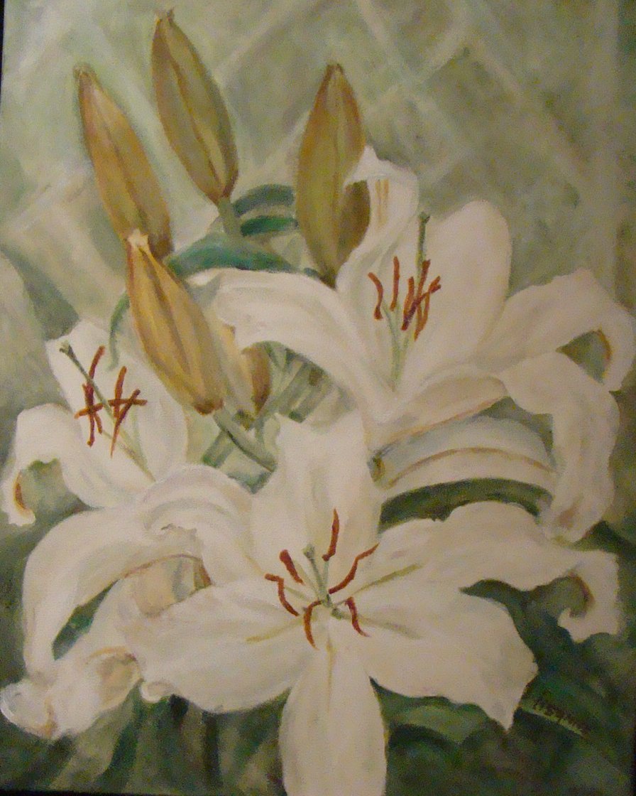 Lelies de moeite waard, een dankbare bloem. In handgeschilderde lijst