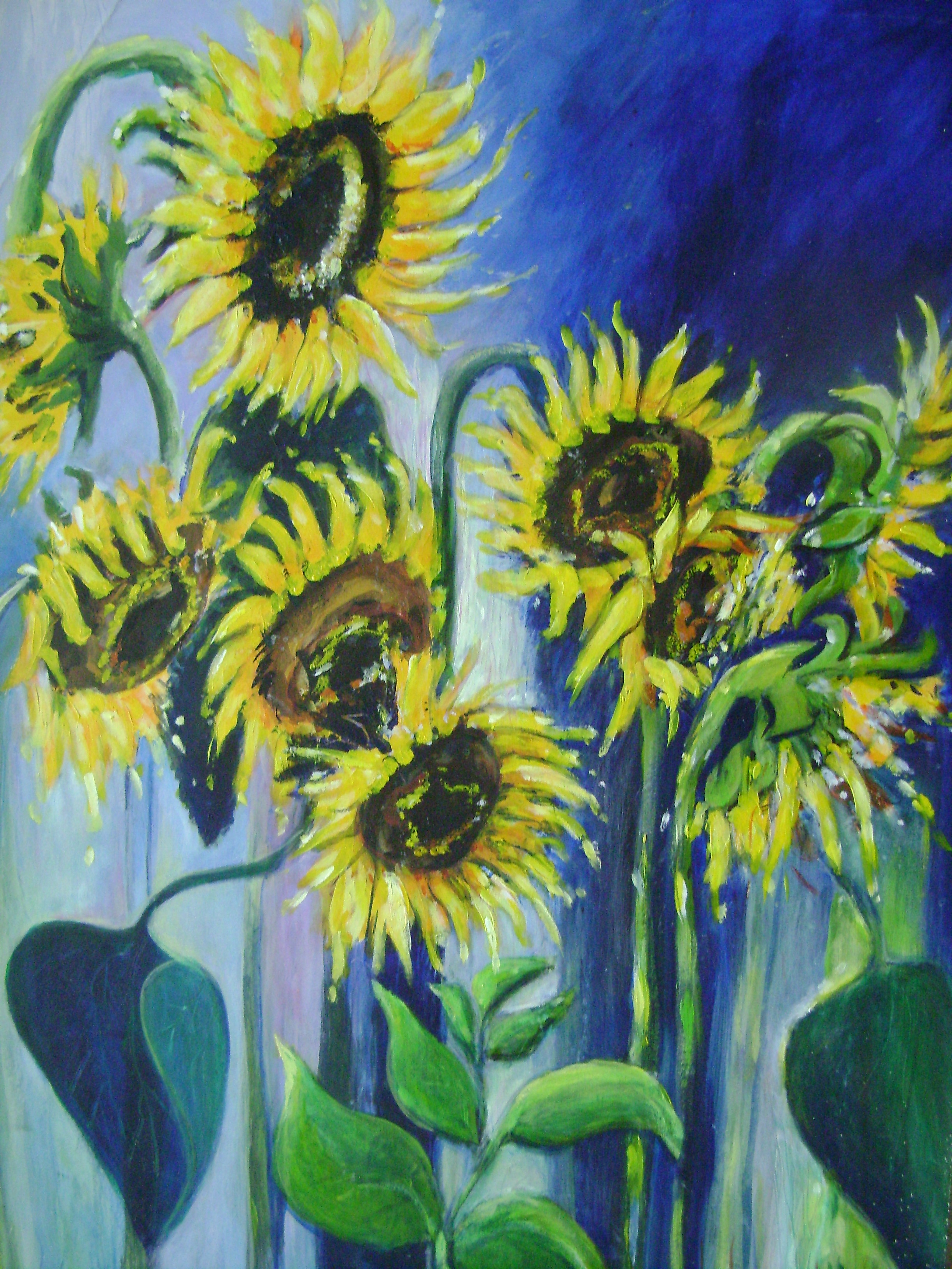 Acryl Impressie Natuur Bloemen Geel Blauw Groen