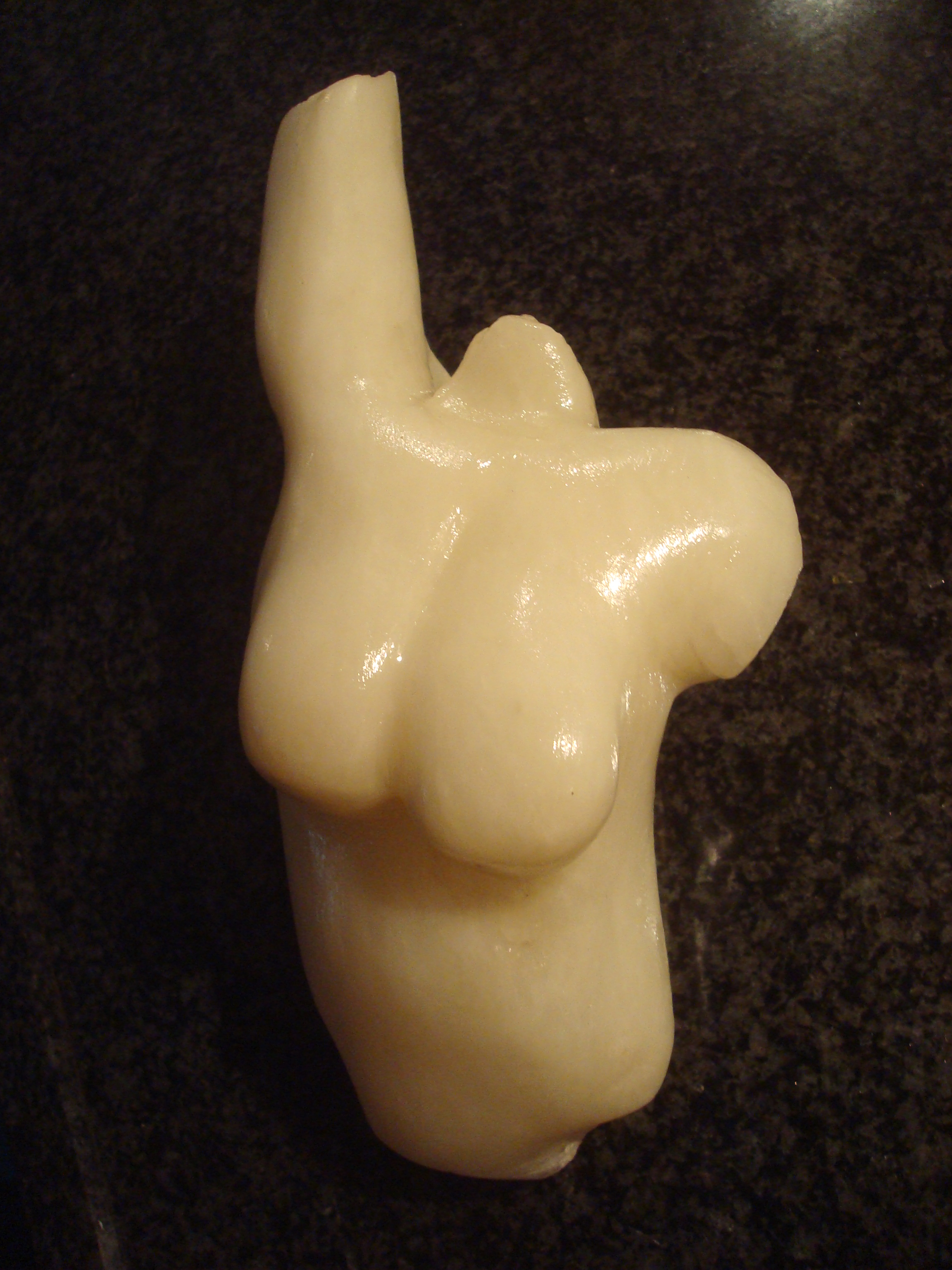 Een vrouwentorso in wit albast.
