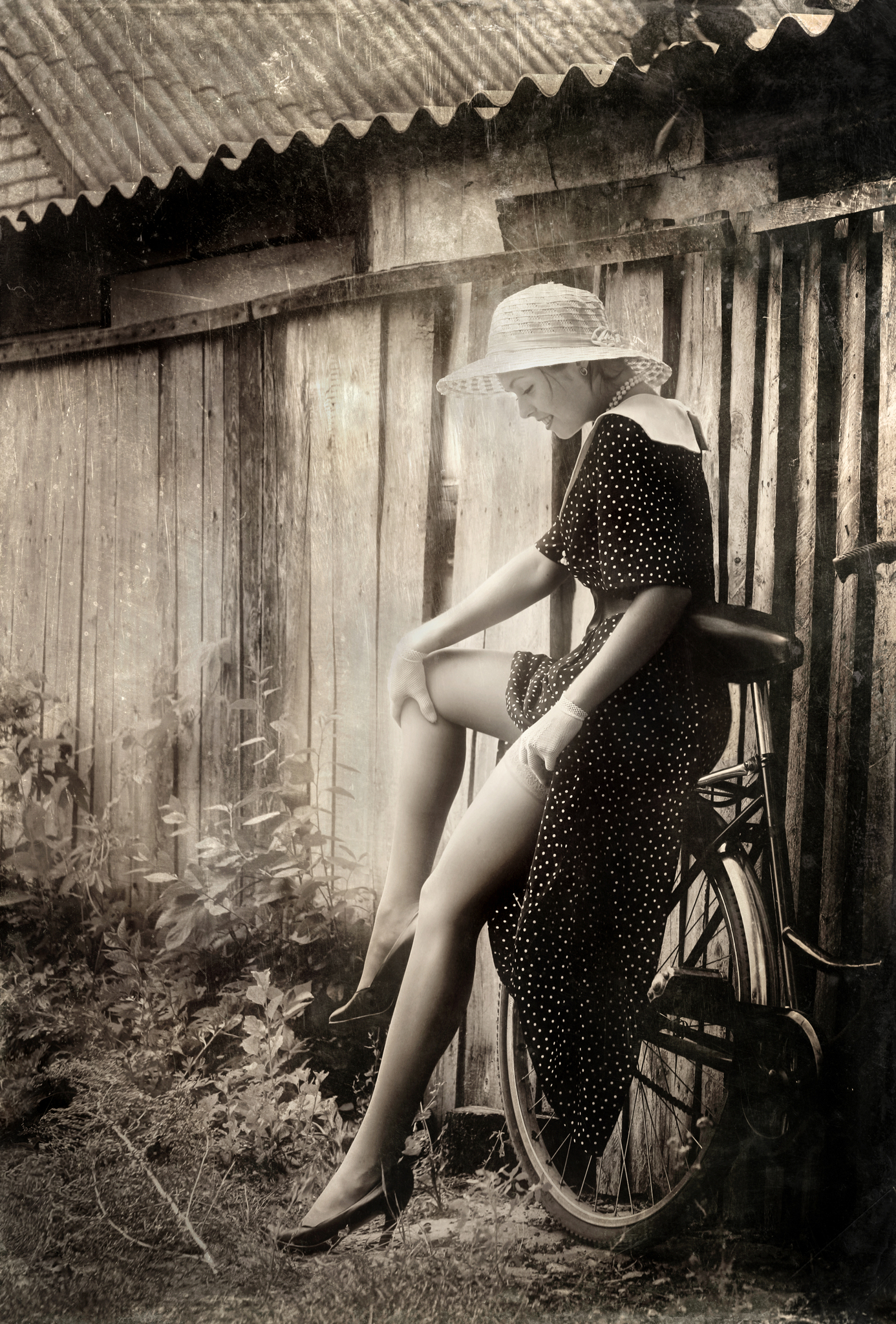 Girl Bike Village Pinup Bicycle Humour #dutch #artgallery #nederland #netherlands #instagram #hek #eindhoven #edgalagan #galagan #edwardgalagan #eduardgalagan #artgalerie #humor #joke #stocking #hat #hoed #nostalgia #kousen
