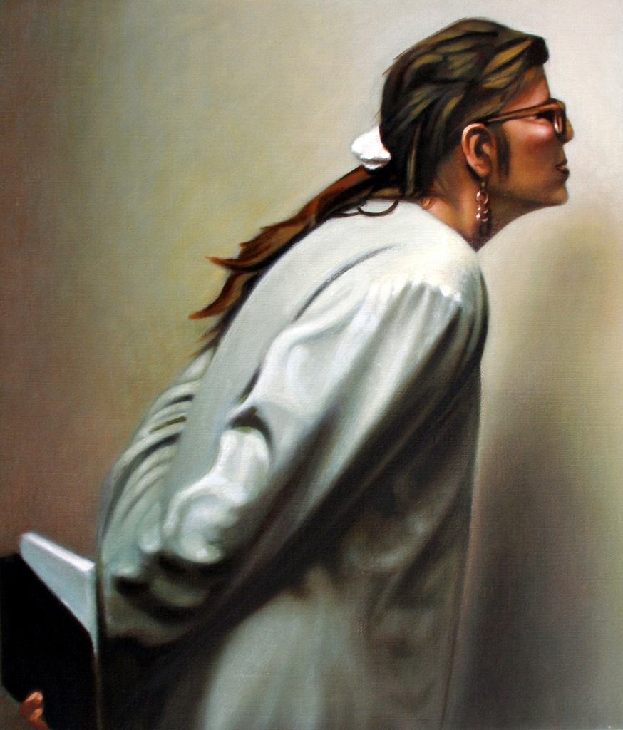 Mensen Figuratie Groen Vrouw Portret Man Art Media Woman Realistisch Kunst Oilpainting Portrait Museum Olieverfschilderij Green Materie Vervreemding Realisme Realism Paint Communicatie Kijken People Muur