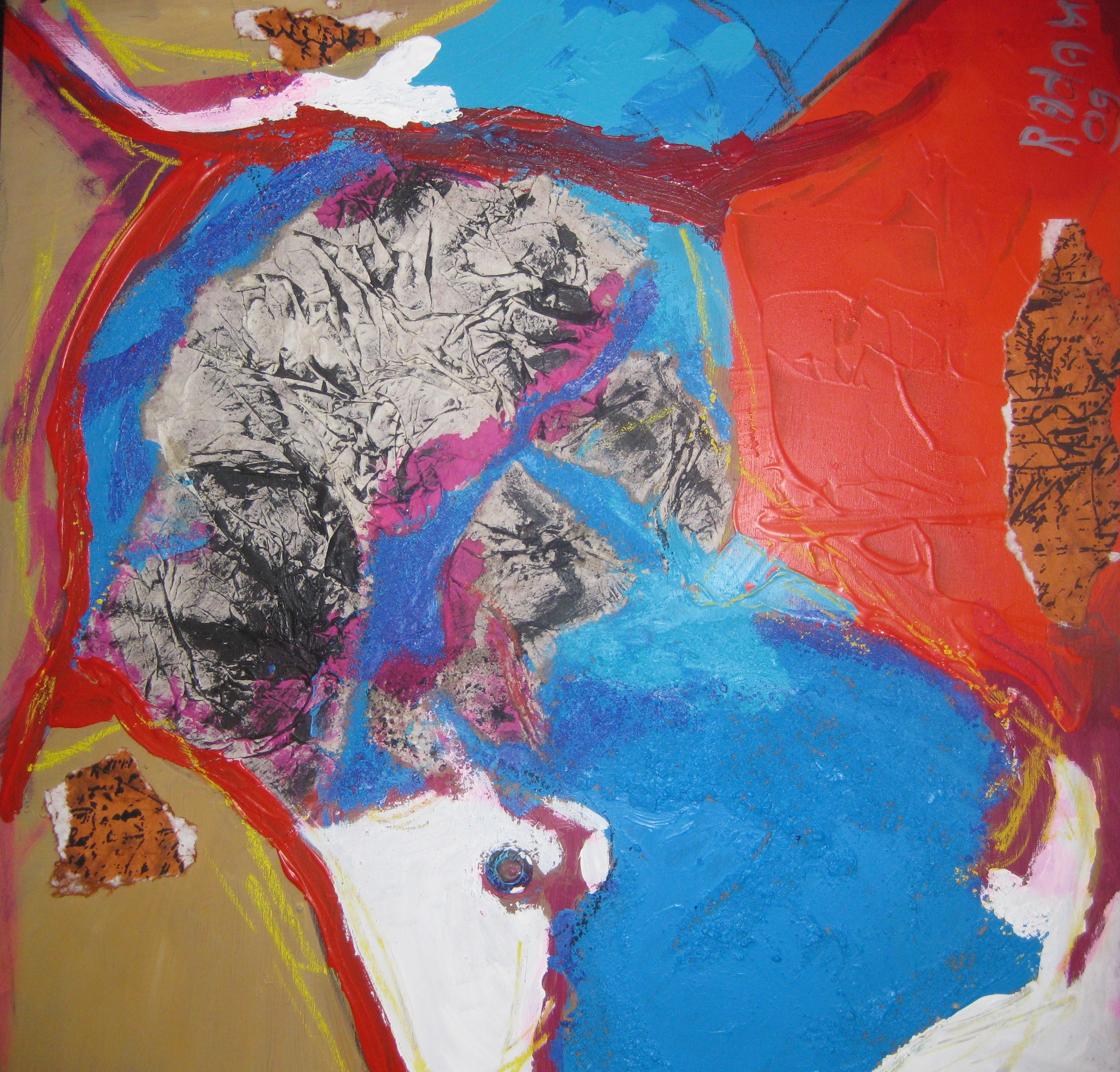 Dit is het tweede schilderij van een serie waarin ik experimenteer met allerlei materialen om een speciaal gevoel weer te geven.