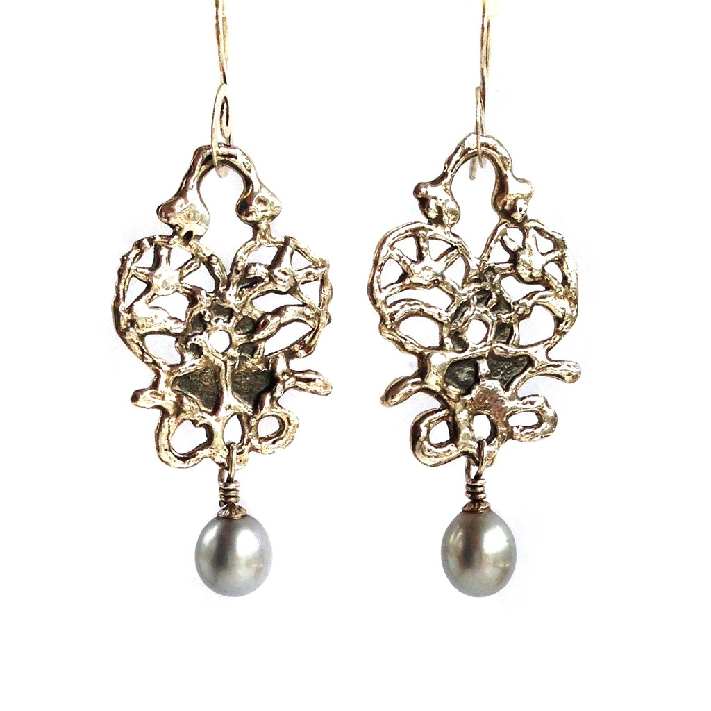 Oorbellen geïnspireerd op oude Zeeuwse sieraden 1e gehalte zilver, zoetwaterparels