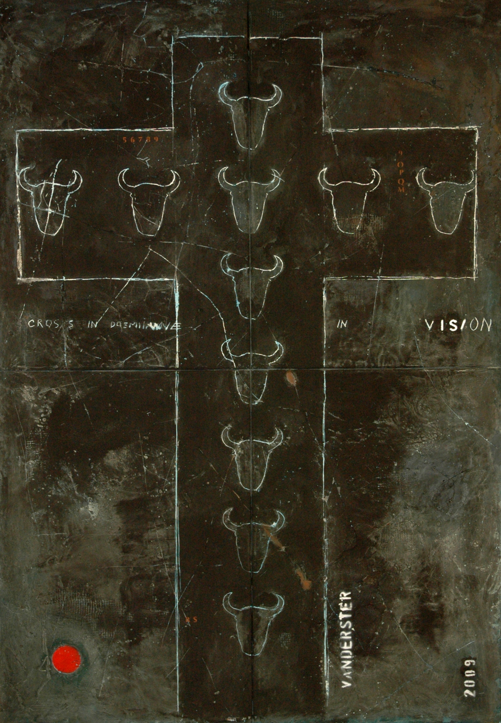 200 x 140 cm. Kruis met stierenkoppen Materie-schilderij