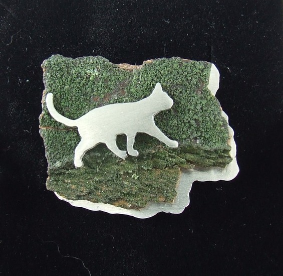 Deze broches/hangers worden met de hand gemaakt waardoor ieder exemplaar weer anders en dus uniek is. De broche/hanger kan met ieder dier of figuur naar wens gemaakt worden. Materiaal: zilver/boomschors. Bijdrage verzend- en verpakkingskosten: €2,50