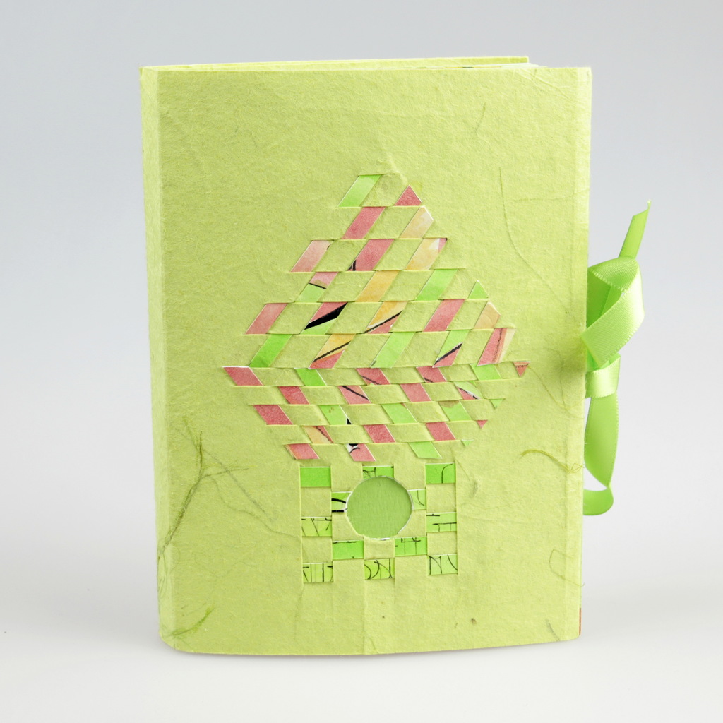 Geel Groen Papier Lente Vogelhuis Acrylinkt Leporello Artbook