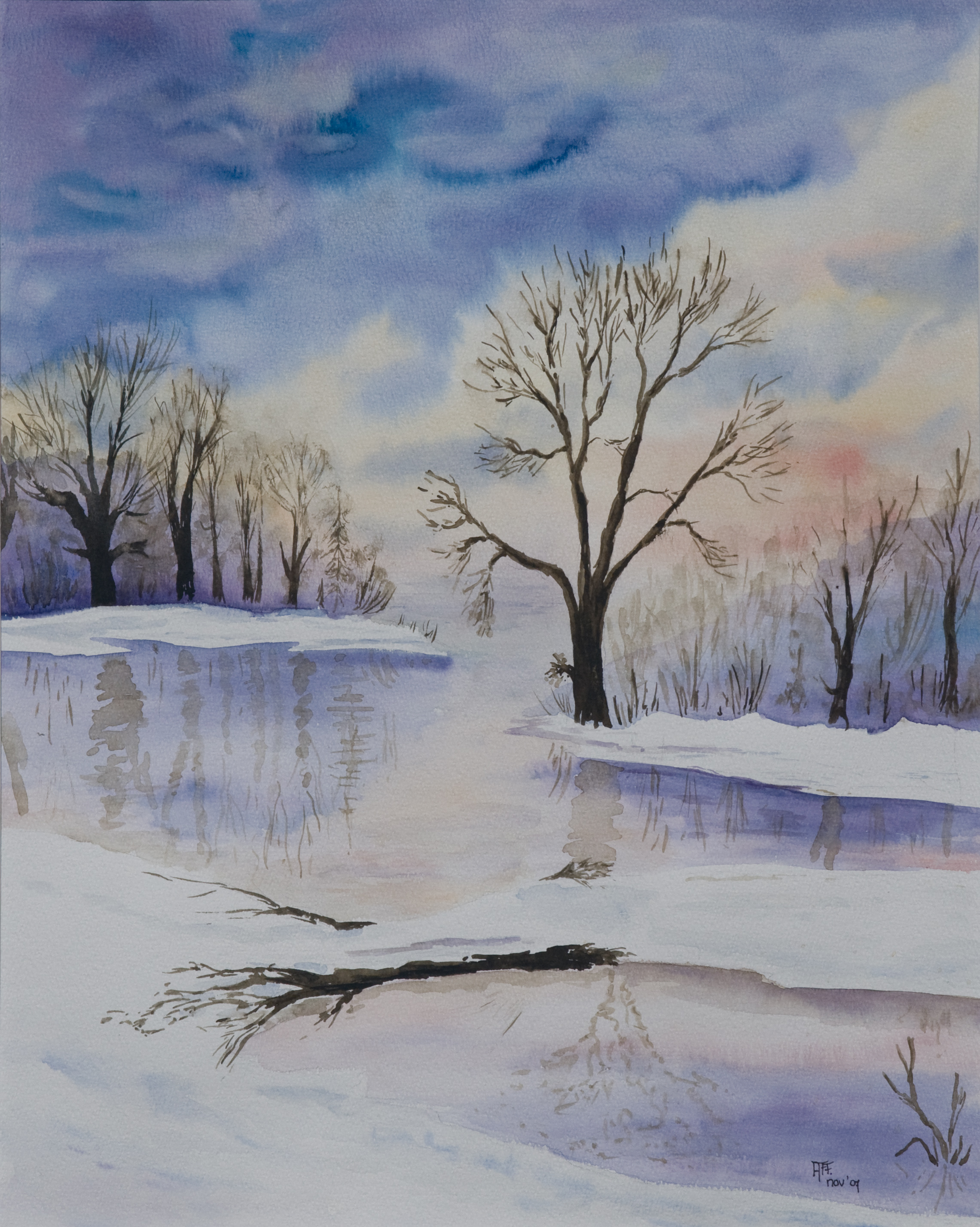 Aquarel Lanschap Realistisch Natuur Winter