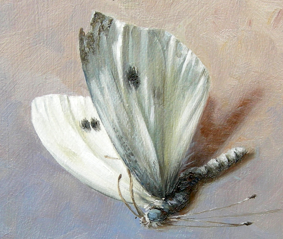 Schilderij Art Vlinder Dier Olieverf Kunst Painting Stilleven Rond Butterfly Dood Realisme Realism Zomer Insekt Koolwitje Contempary Cabbage
