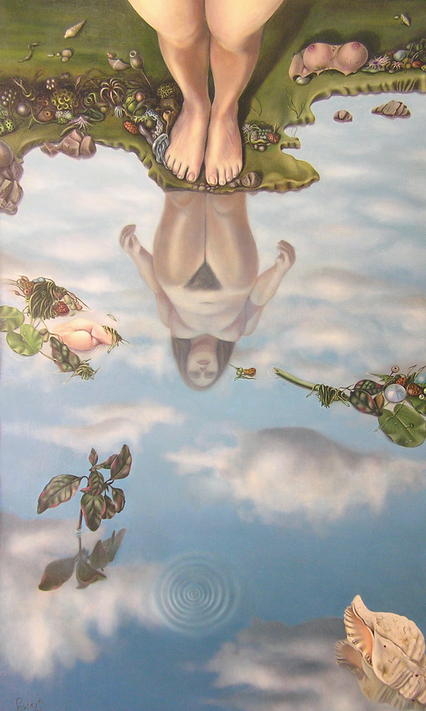 Landschap Vrouw Water Olieverf Schelp Spiegeling Naakte