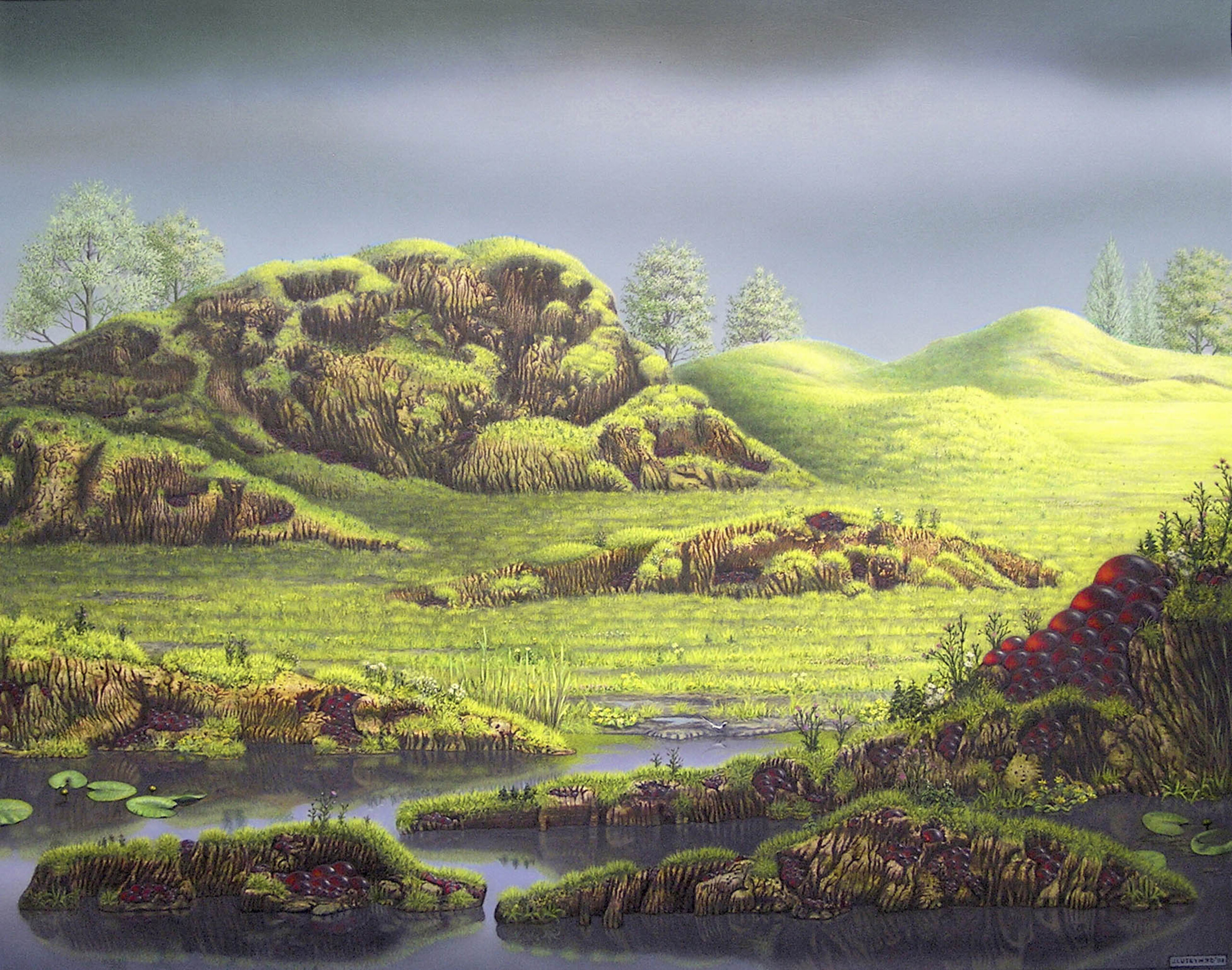 Landschap Acryl Bloemen Gras Fantasie Dreiging Grond Hopen