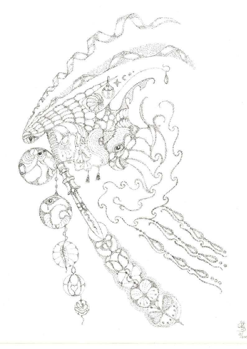 Mediterend spinsel wat zonder voorafgesteld plan wordt gemaakt in stippeltechniek