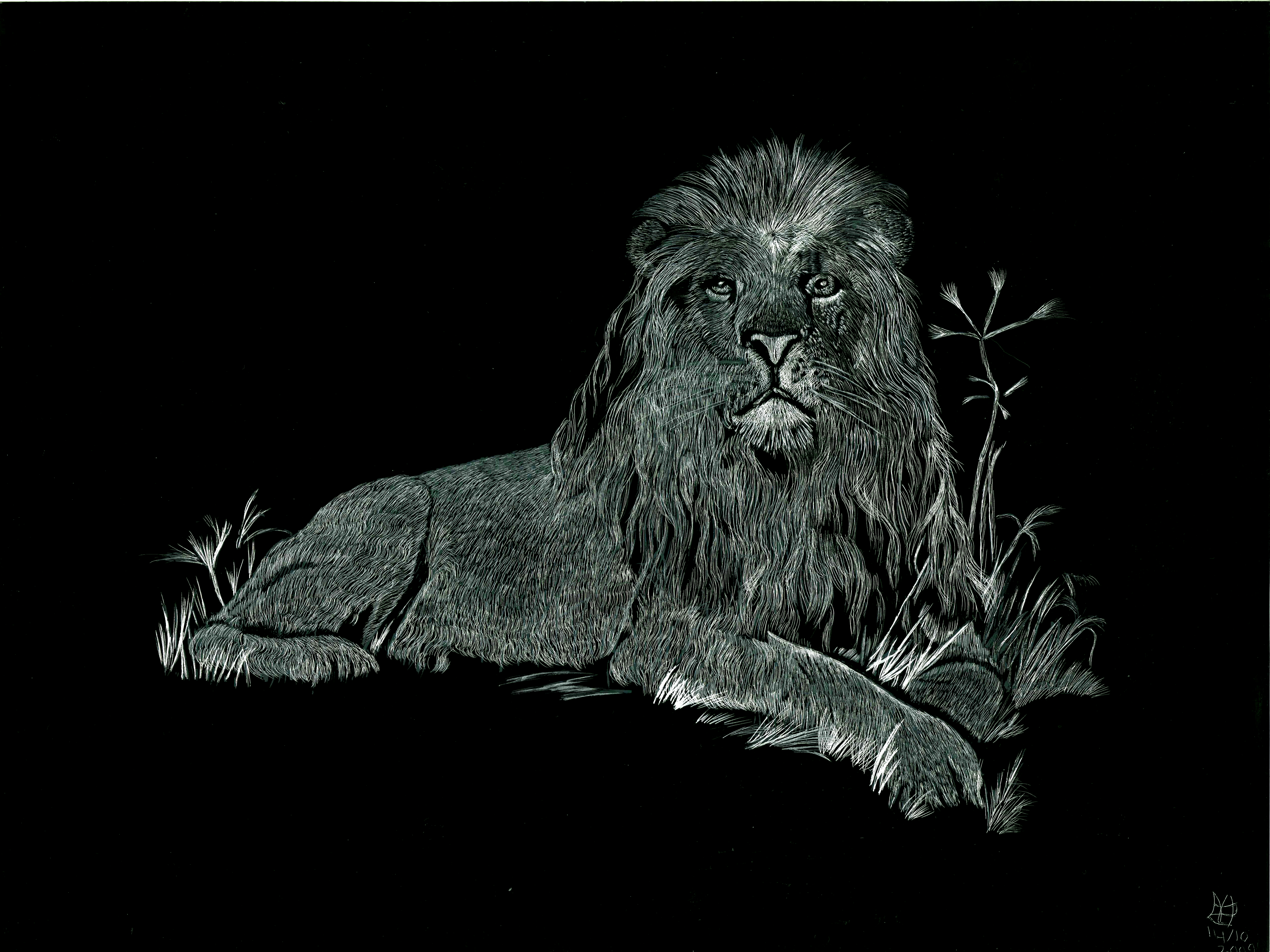 Dieren Dier Kat Realistisch Inkt Katten Grote Leeuw Oostindische Gravure Roofdieren