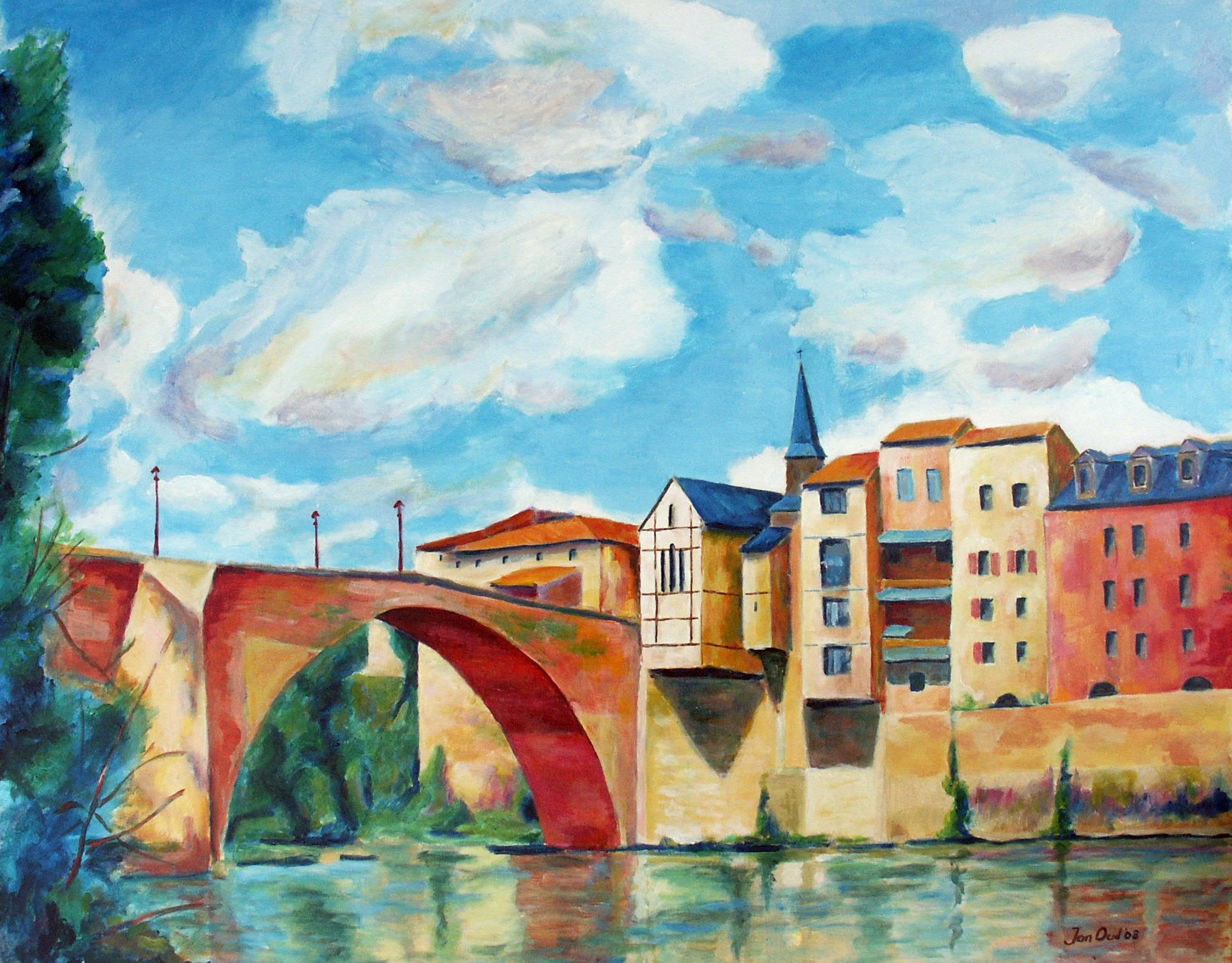 Gezicht op Villeneuve sur Lot. Departement Lot. Frankrijk