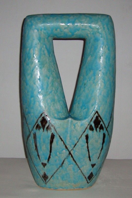 Zoektocht in keramiek: vrouwzijn in vloeiende lijnen en contouren; hoge dunne vaasvormen als weerspiegeling van een zoektocht naar identiteit...