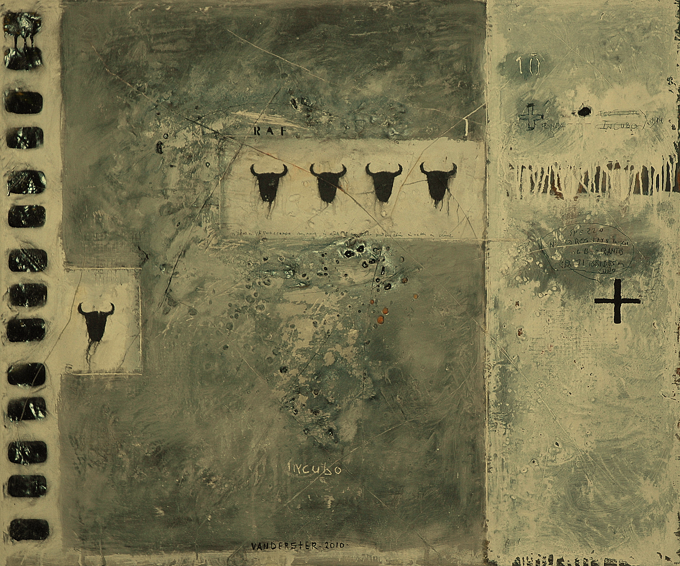 Vormen van een stierenkop Afm. 110 x 92 cm. Materie-schilderij