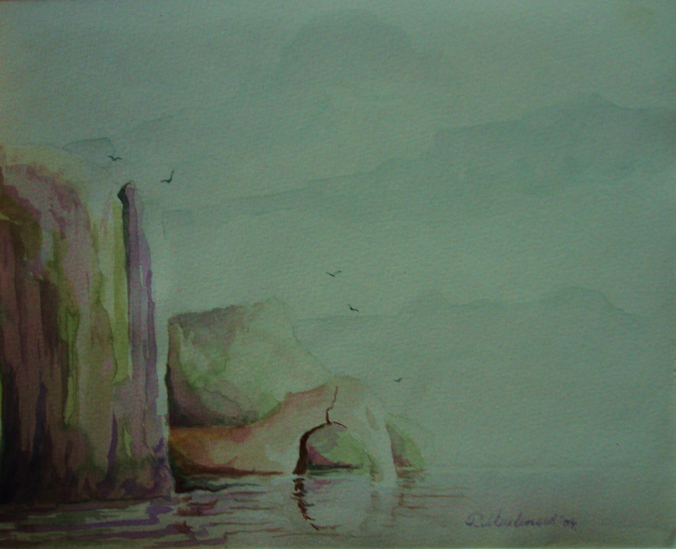 Aquarel Rotsen Zee Romantiek Realisme