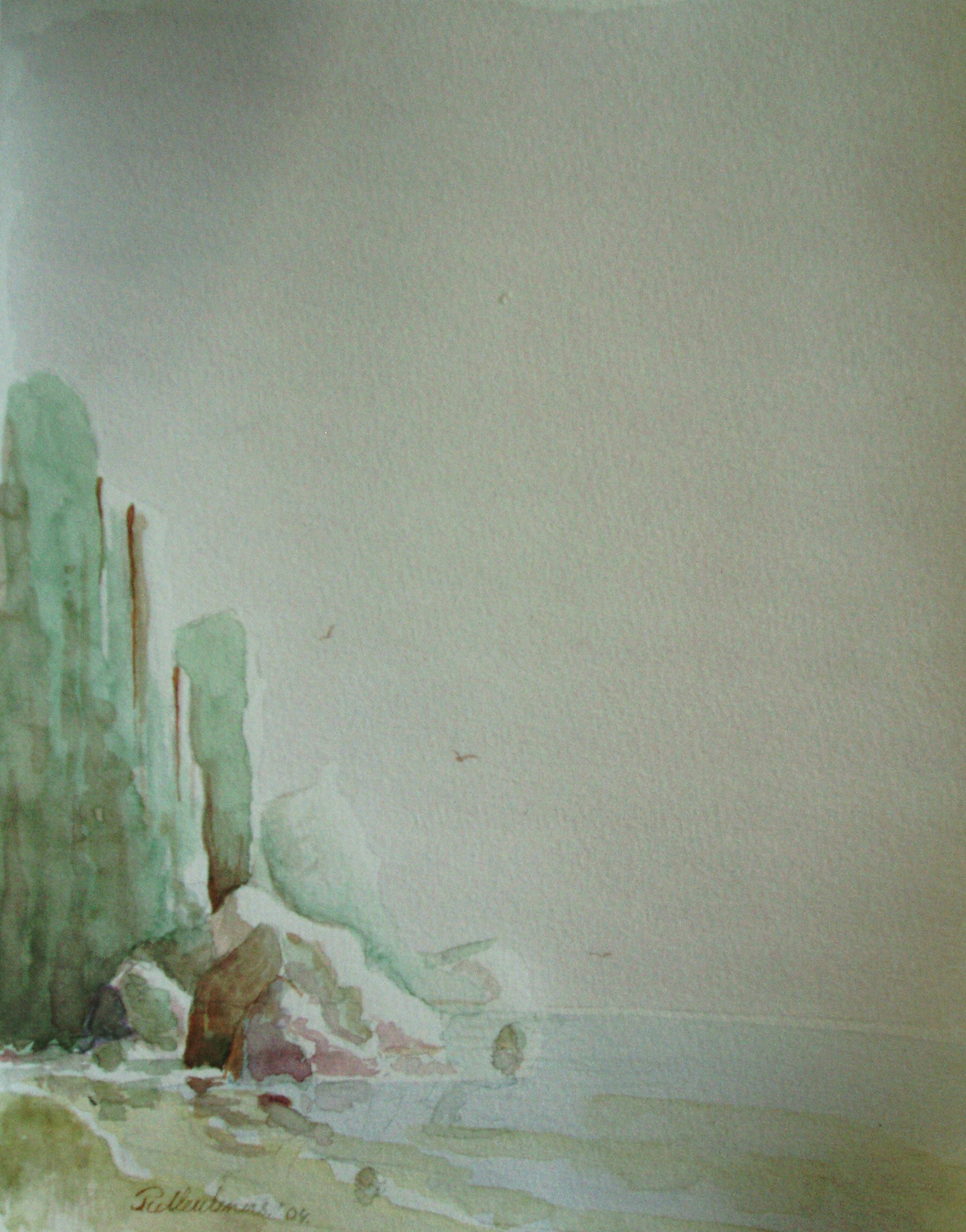Aquarel Rotsen Strand Zee Romantiek Realisme