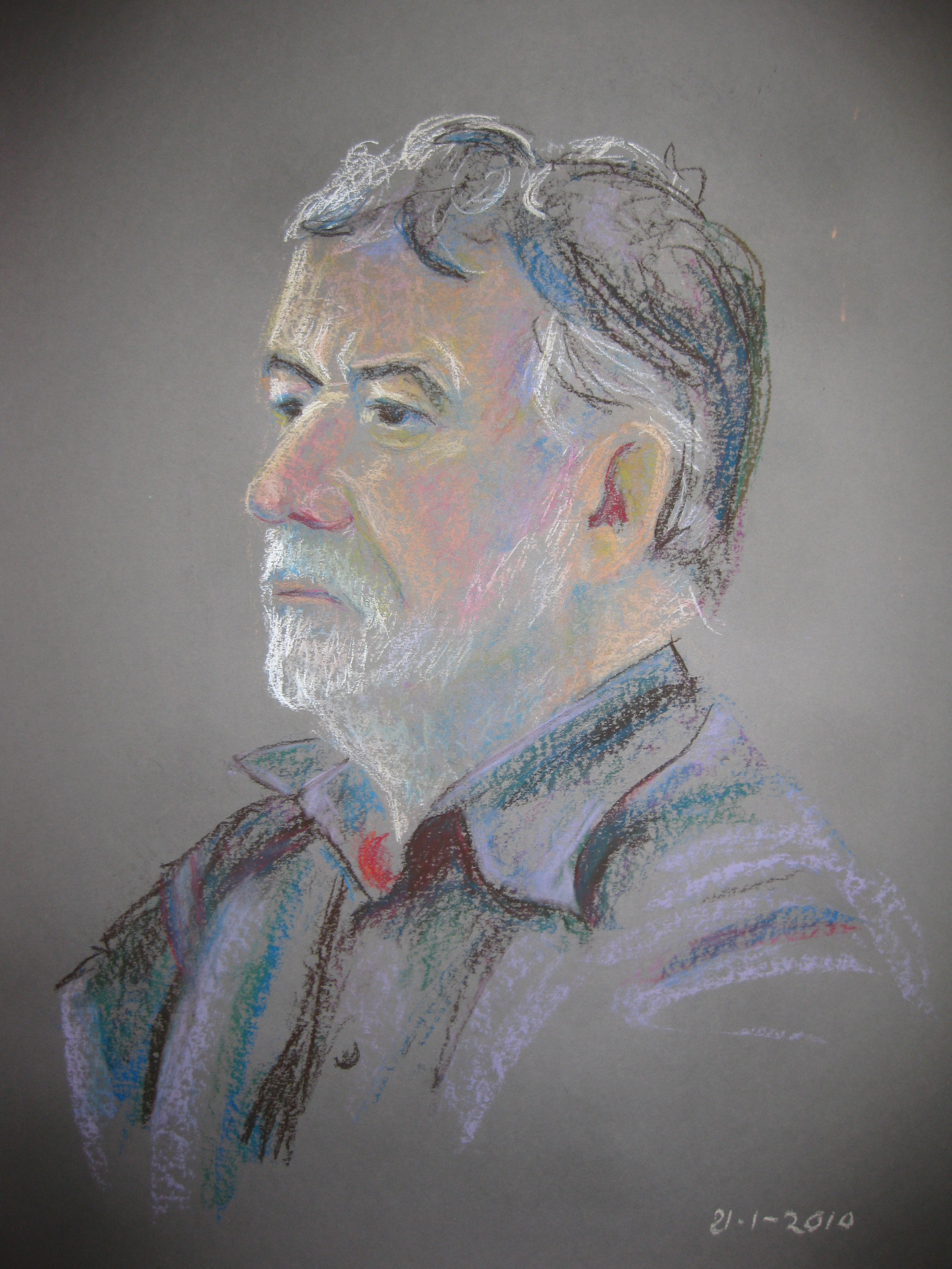 Grijs Portret Man Kop Krijt Pastelkrijt Mannenportret