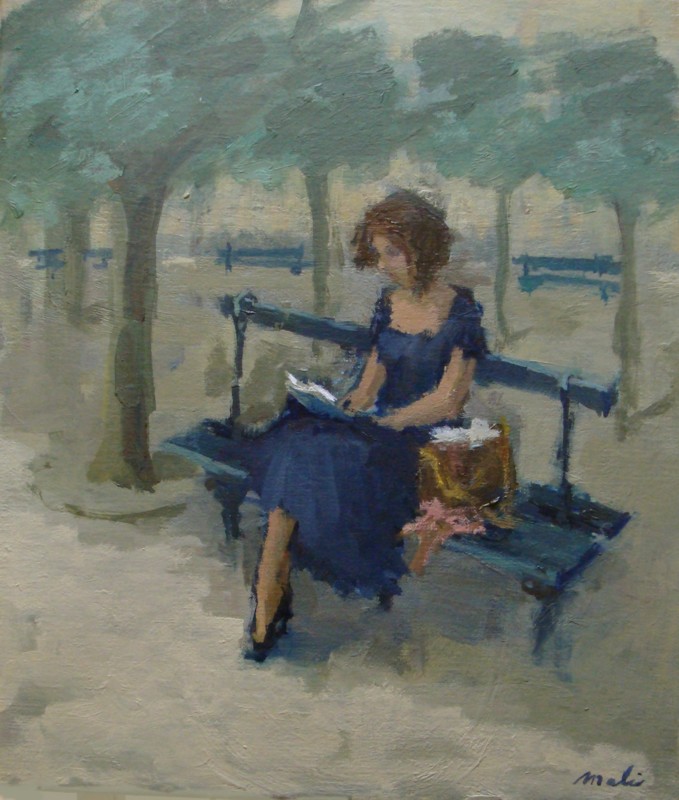 Verkocht. Jong meisje lezend op een bankje in Place des Vosges, Parijs. Een favoriete plek voor studenten.