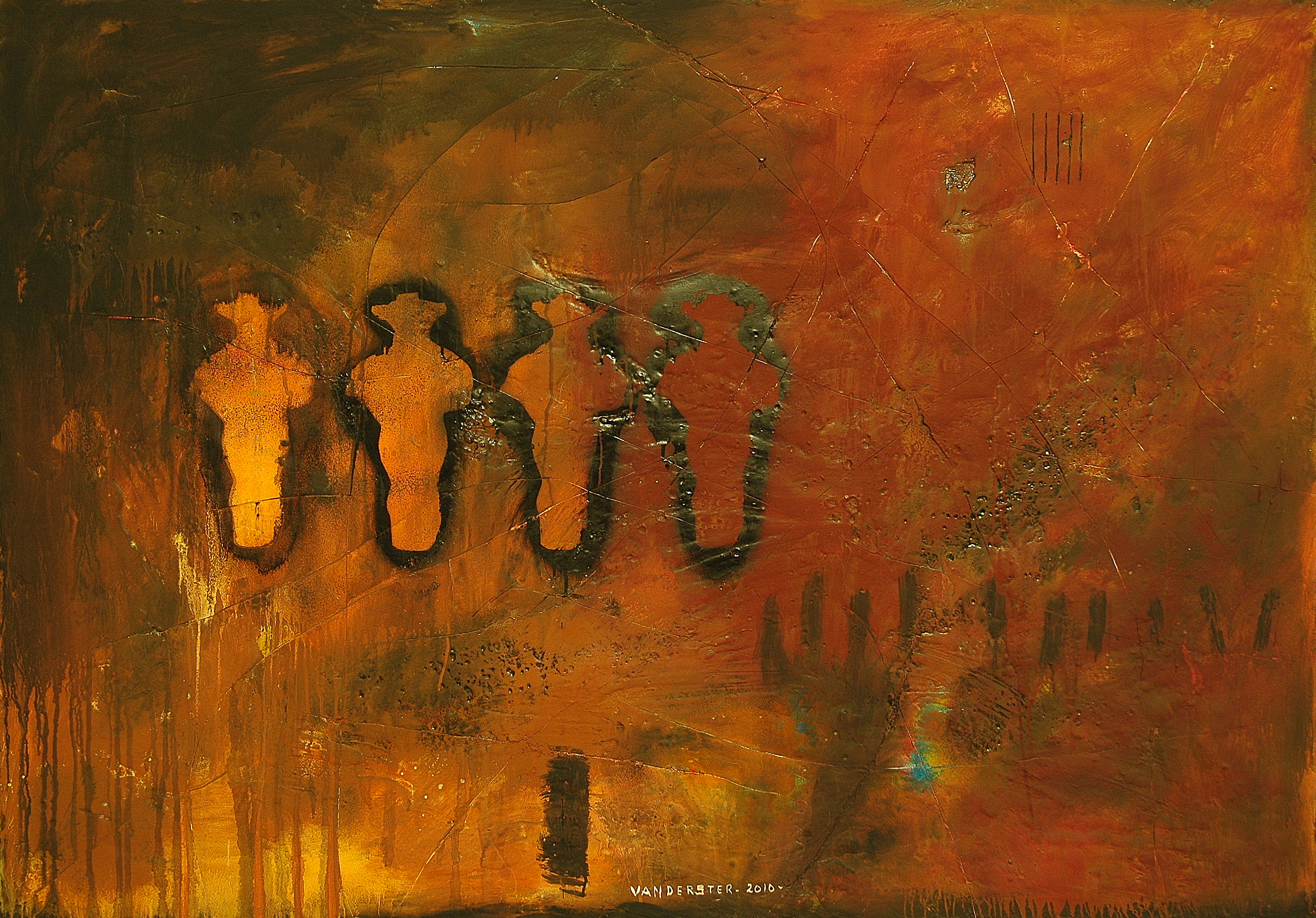 150 x 105 cm. Mensfiguren Materie-schilderij