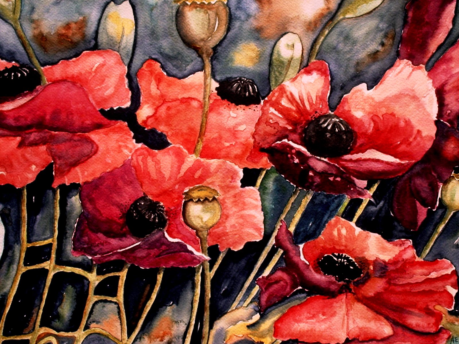 Groep Rood Bloemen Aquarel Natuur Kracht
