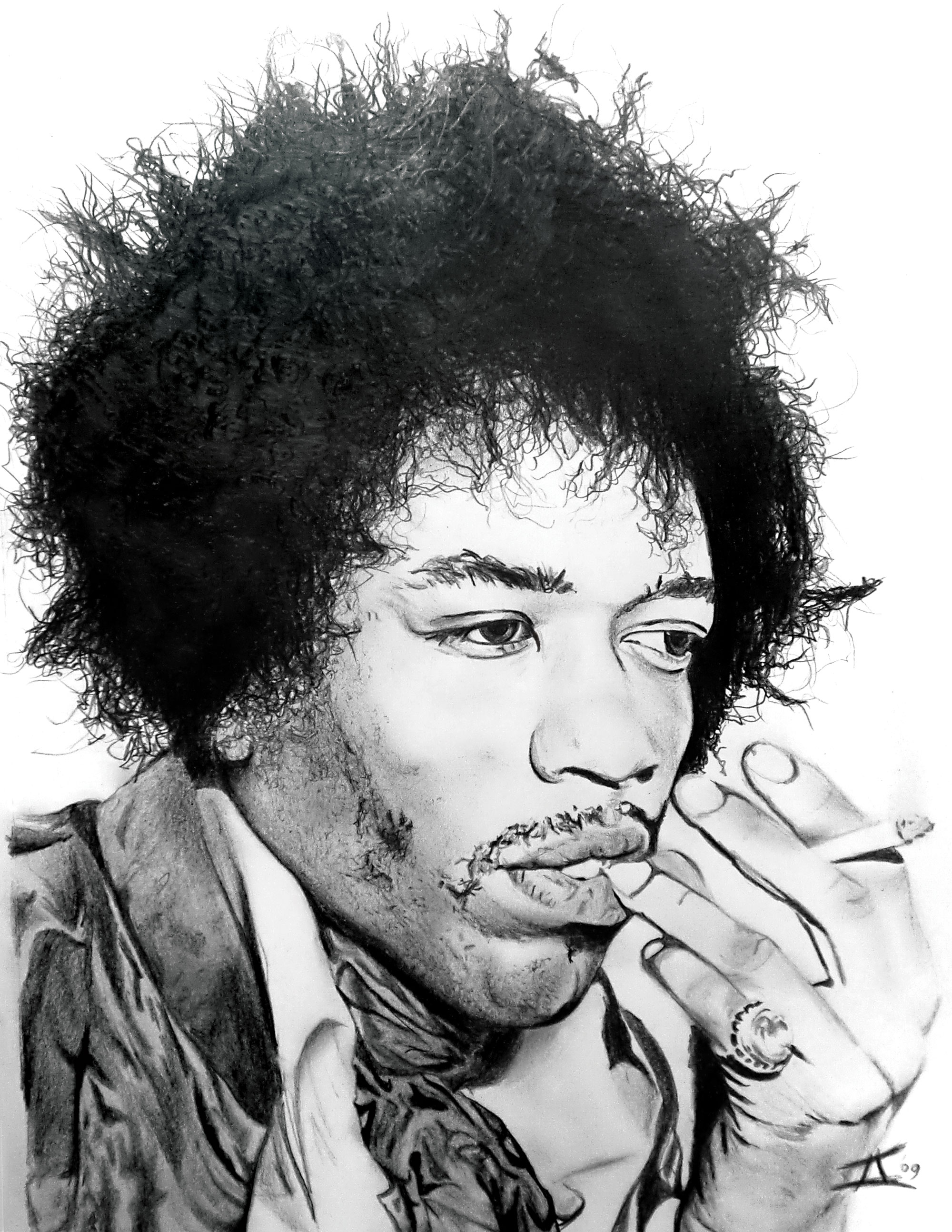 Mensen Man Papier Potlood Gezicht Portrait Face Paper People Portet Grafiet Zanger Roken Men Singer Pencil Jimi Smoking Beroemdheid Celebrity Graphite Henrix
