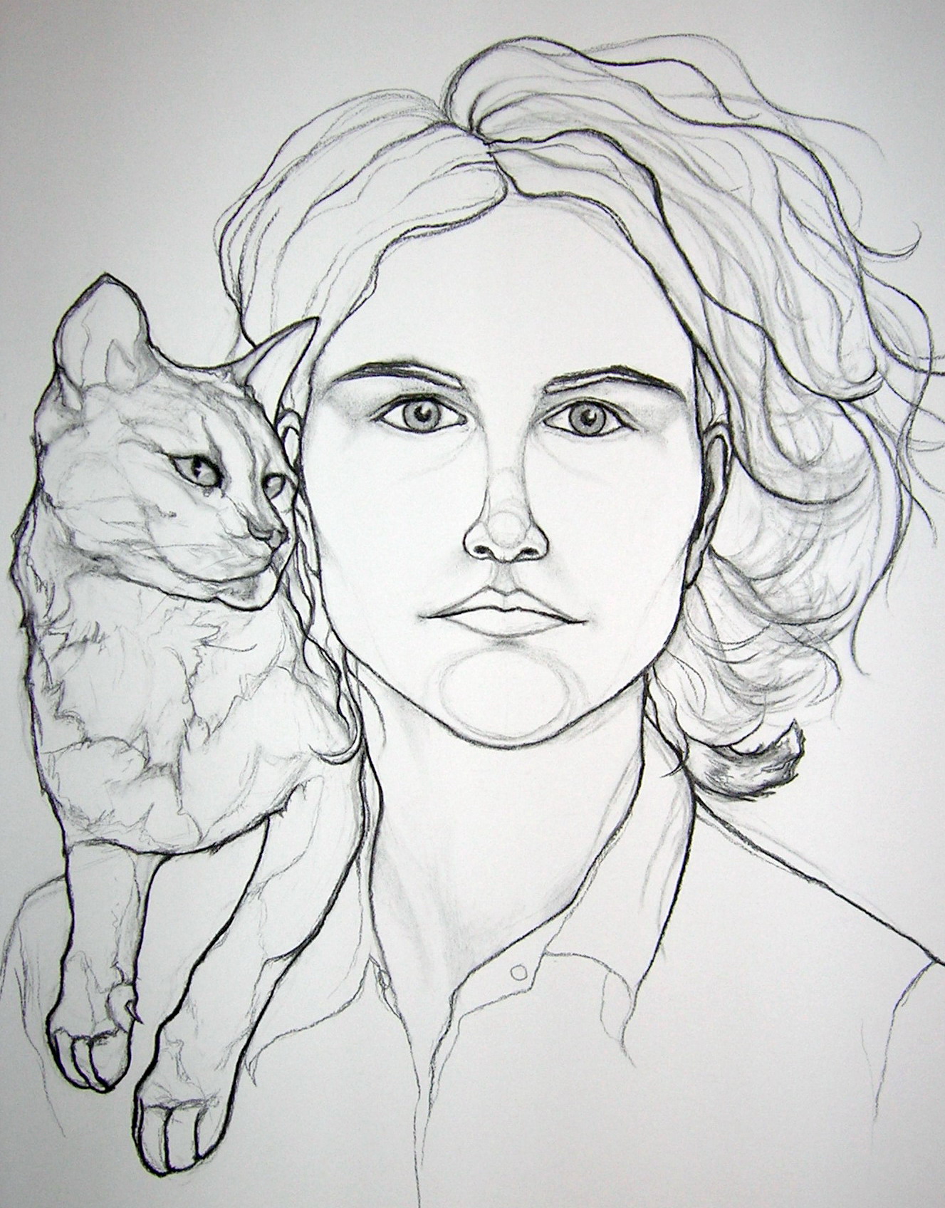 Vrouw Kat Jonge Houtskool Poes Zelfportret Jaar Poseren Pose 26 Healing Healings Handoplegging Energie Zelfrealisatie Hogere Zelf Inner Self Lichtwerker Reiki