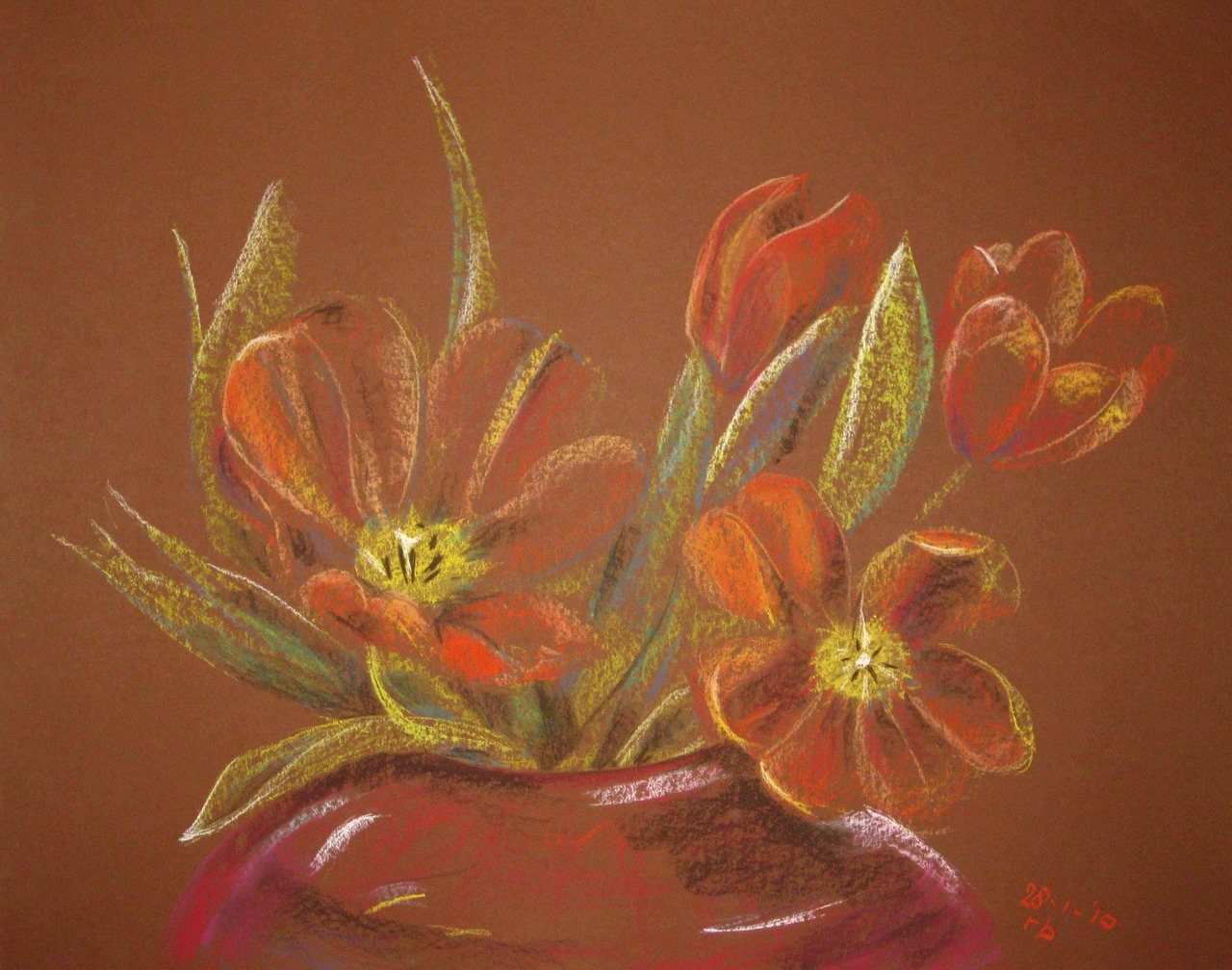 Expressief Tulpen Vaas Krijt Realistisch Pastel Lyrisch