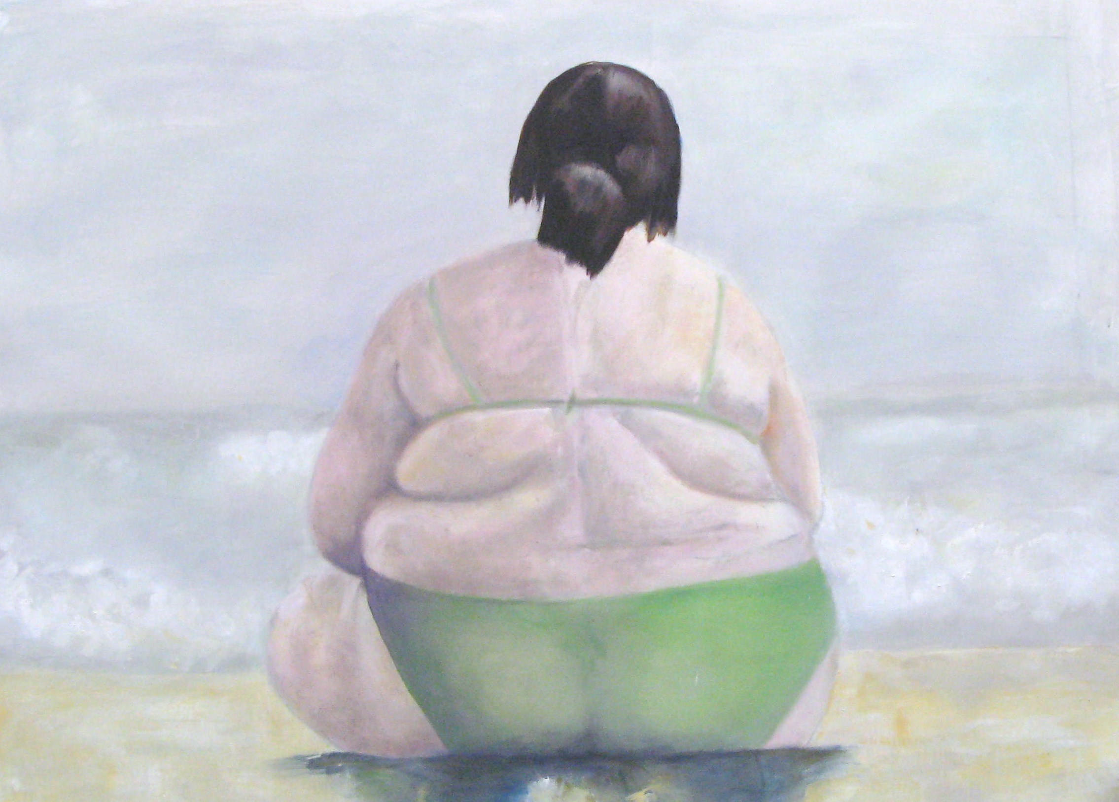volslanke vrouw aan zee