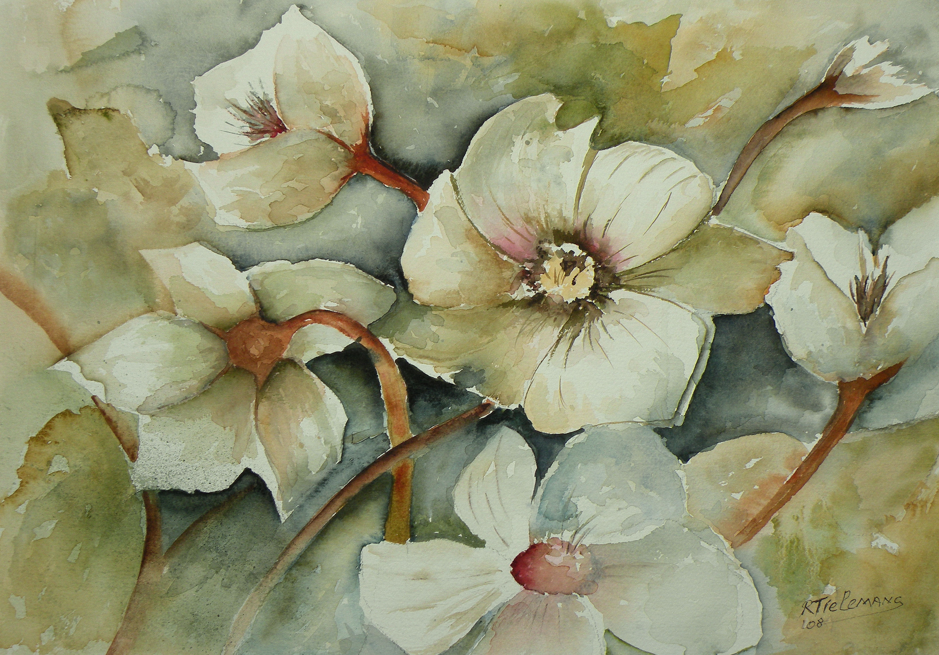 Wit Grijs Groen Bruin Aquarel Bloem Green White Brown Flower Watercolour Grey Helleboris Hellebore