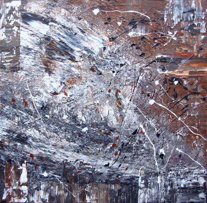 Artistic Press Area. Acrylverf op linnen doek bespannen op een aluminium frame. Ingelijst in een matzwarte baklijst.