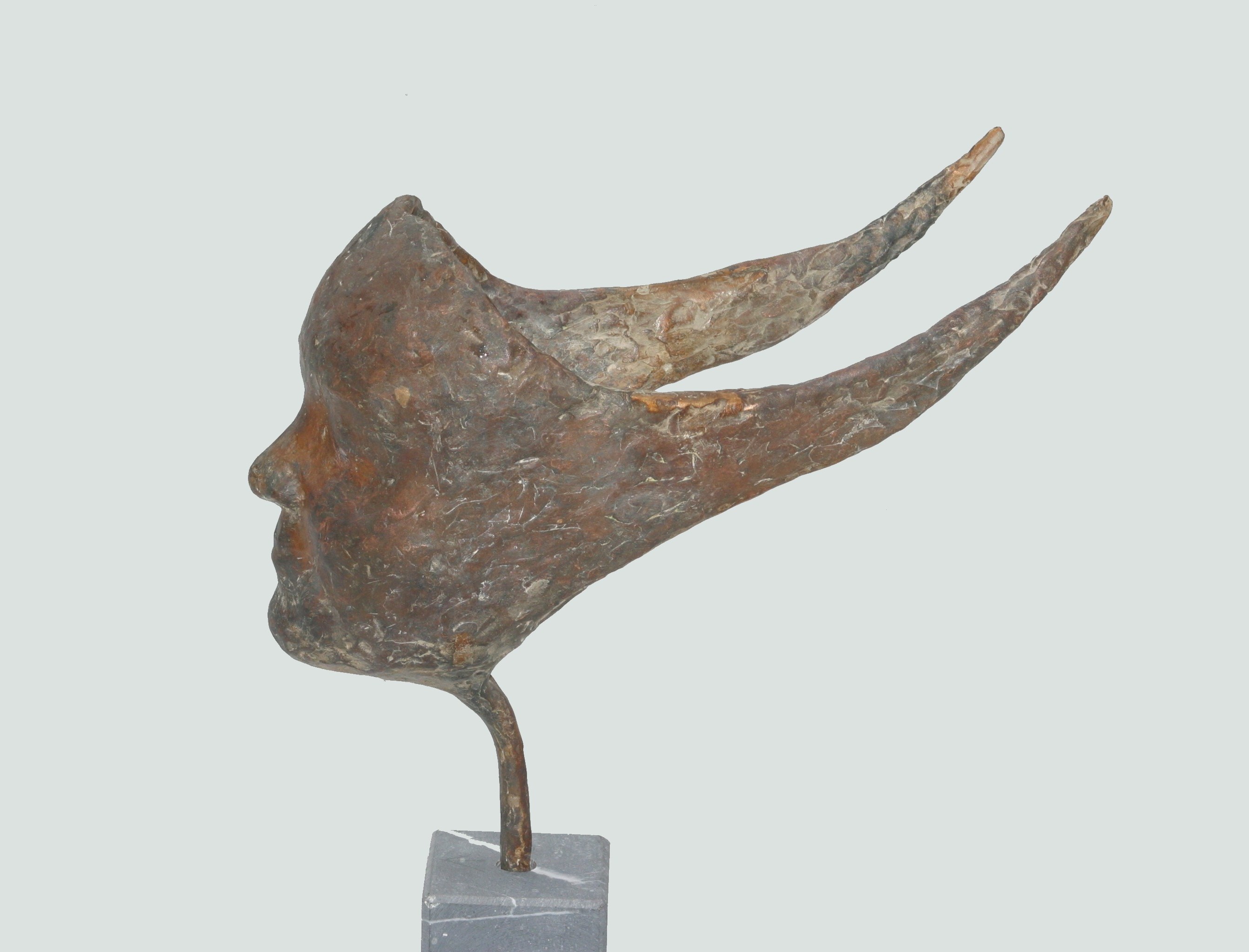 Masker brons. De giethuid is bewaard gebleven Maten excl sokkel. Unicum. Verkocht.
