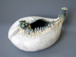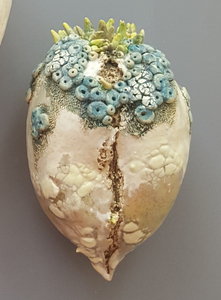 Kwetsbaarheid en vergankelijkheid staan centraal in Sandrina Kreek’s werk. Haar keramische sculpturen hebben vaak een wat rauwe uitstraling maar als dichterbij komt zie je verfijning. Sandrina wil de kijker prikkelen om dichter bij te komen en beter te kijken. Zoals met de serie “Souvenirs from Nature”, waarbij de sculpturen een fossielachtige uitstraling hebben, zo uit de aarde of de zee afkomstig lijken. Iedere keer ontdek je weer andere, soms vervreemdende details. Niets is wat het lijkt. De korstige en weerbarstige textuur maakt ieder werk spannend. De handgemaakte beelden zijn van aardewerk en steengoedklei, vaak in combinatie met PaperClay, en worden afgewerkt met samengestelde sinterengobes en glazuren. kijk op www.skeramiek.nl voor meer info.