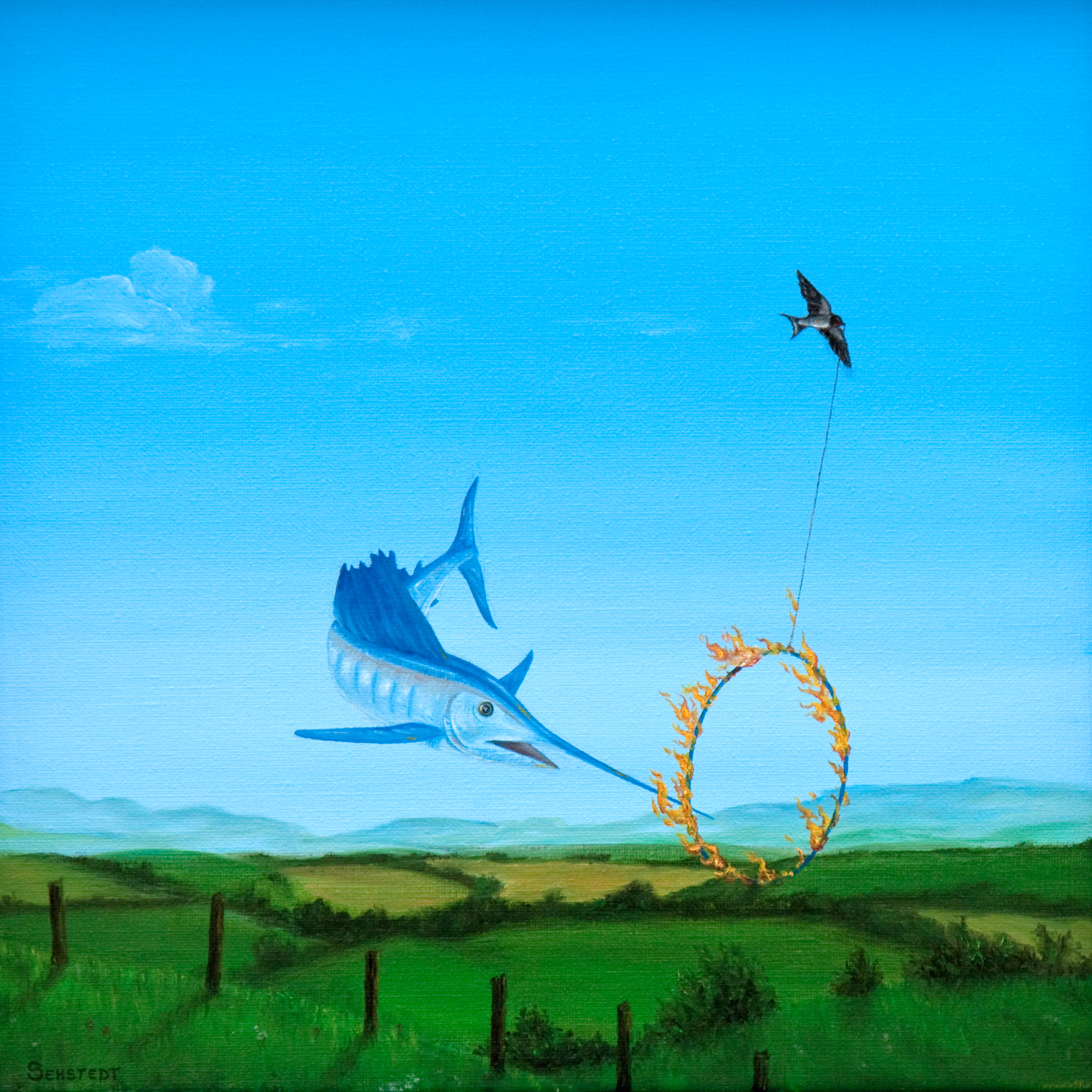 Landschap Blauw Groen Vis Vliegen Vuur Merlijn Zwaluw Aalsmeer Sehstedt Michel Olieverf