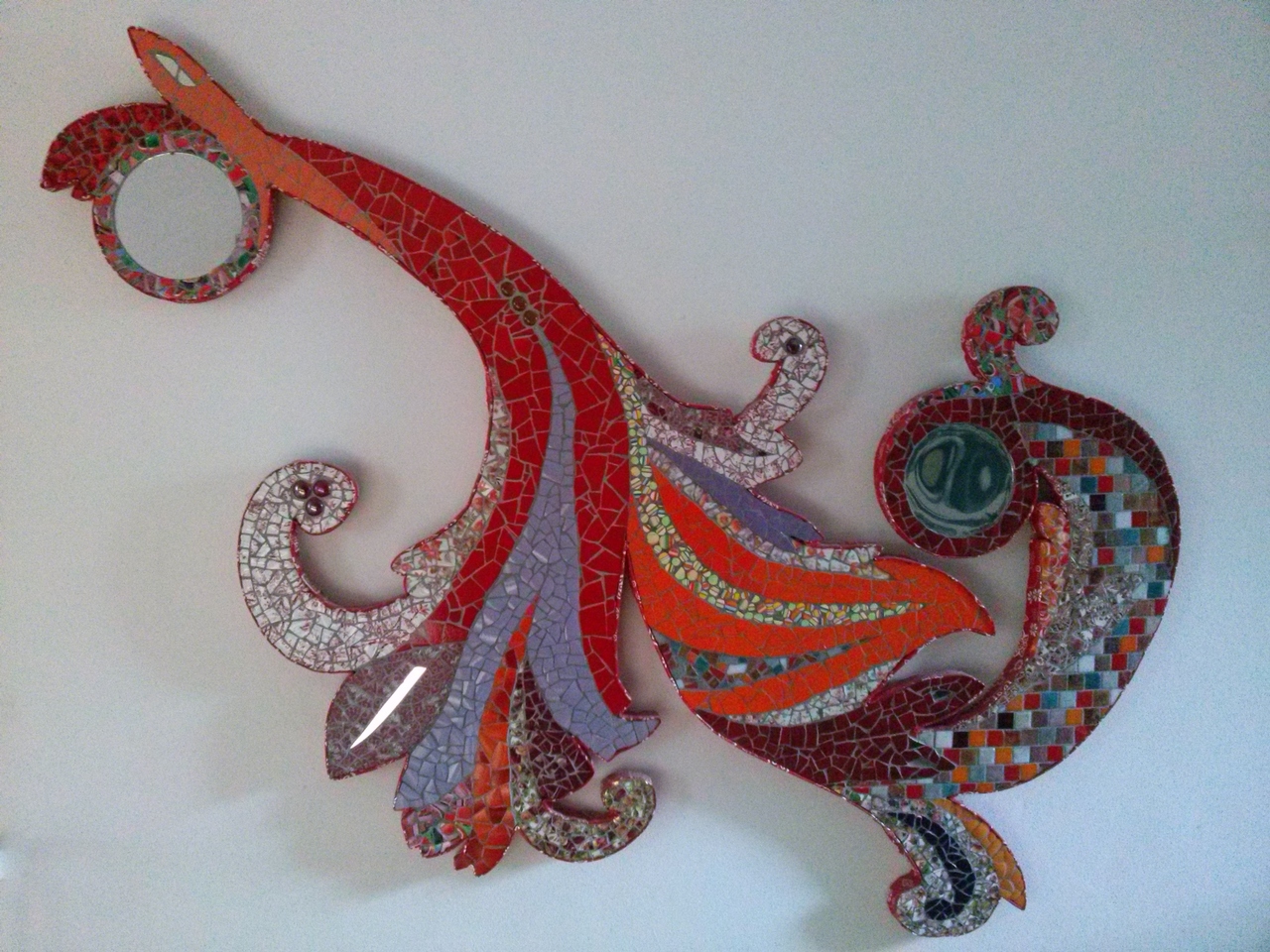 Voor je zie je fragmenten uit de wereld van mij, Mirjam van der Donk (1963), autodidact. Een mozaïek maken is voor mij het uitdrukken van zielsberoerselen, fases uit het leven, waarvan de elementen mooi op elkaar aansluiten. Noodzaak daarbij is reliëf, als een levensweg die niet over gebaande paden loopt. Soms bouw ik muurtjes in mijn werk. Die functioneren als een soort houvast waar het leven niet maakbaar is. Het is een soort behoefte aan stabiliteit in roerige tijden. Het hergebruiken van materialen die anders afgedankt zouden worden geeft mij vaak inspiratie. Ik ben nogal voor duurzaamheid. Met mijn mozaïeken voelt het alsof ik daar een bijdrage aan lever.