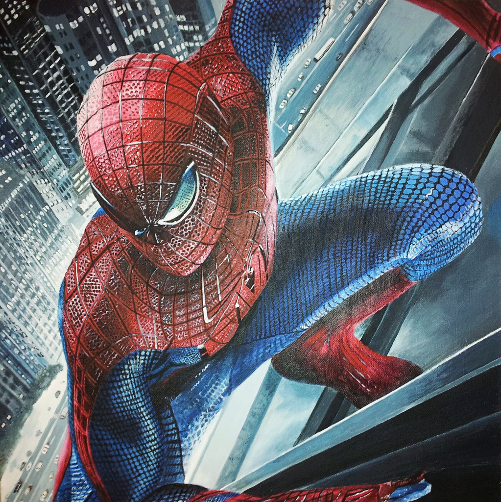 Schilderij van een superheld 2e van een serie van 3 gemaakt met acryl op doek