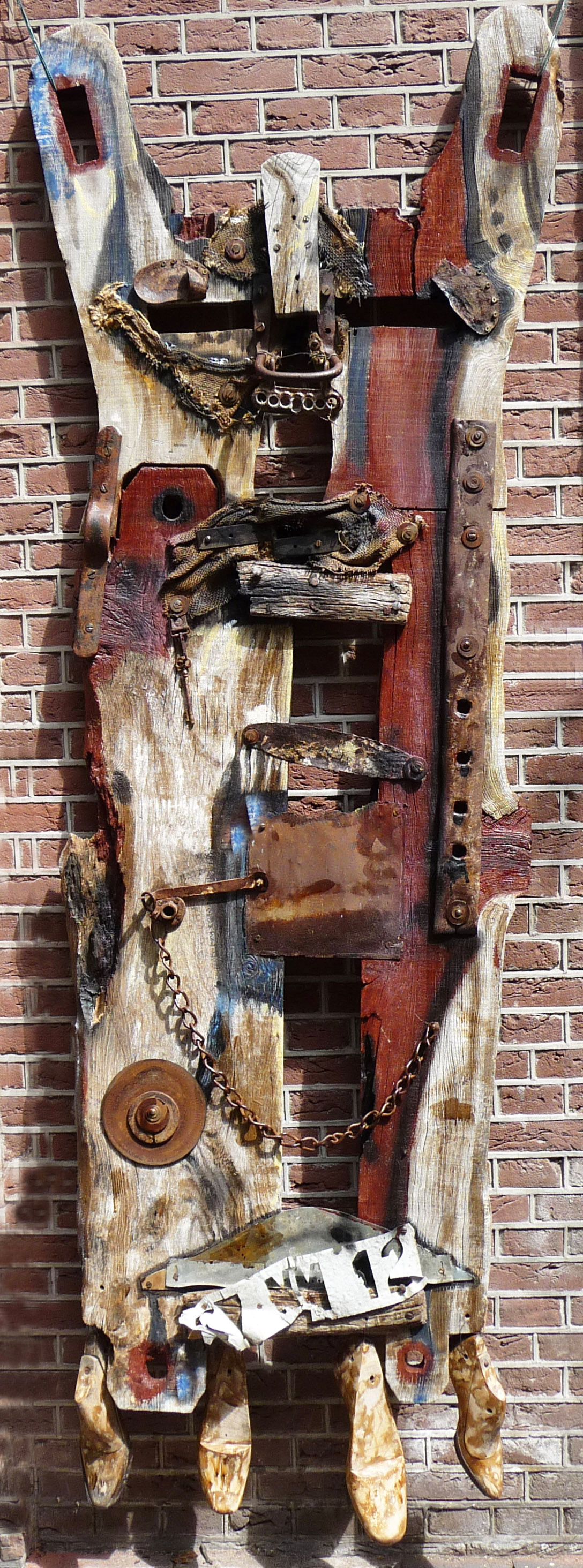 Iets in de buitenwereld intrigeert mij en door deze impressie uit te werken wordt zij blijvend deel van mijn binnenwereld. Laag na laag bouw ik aan de uiteindelijke vorm. Tijdens het werken komt er een stroom van associaties op gang. Het is een constant zoeken naar evenwicht tussen de verf en de andere materialen.