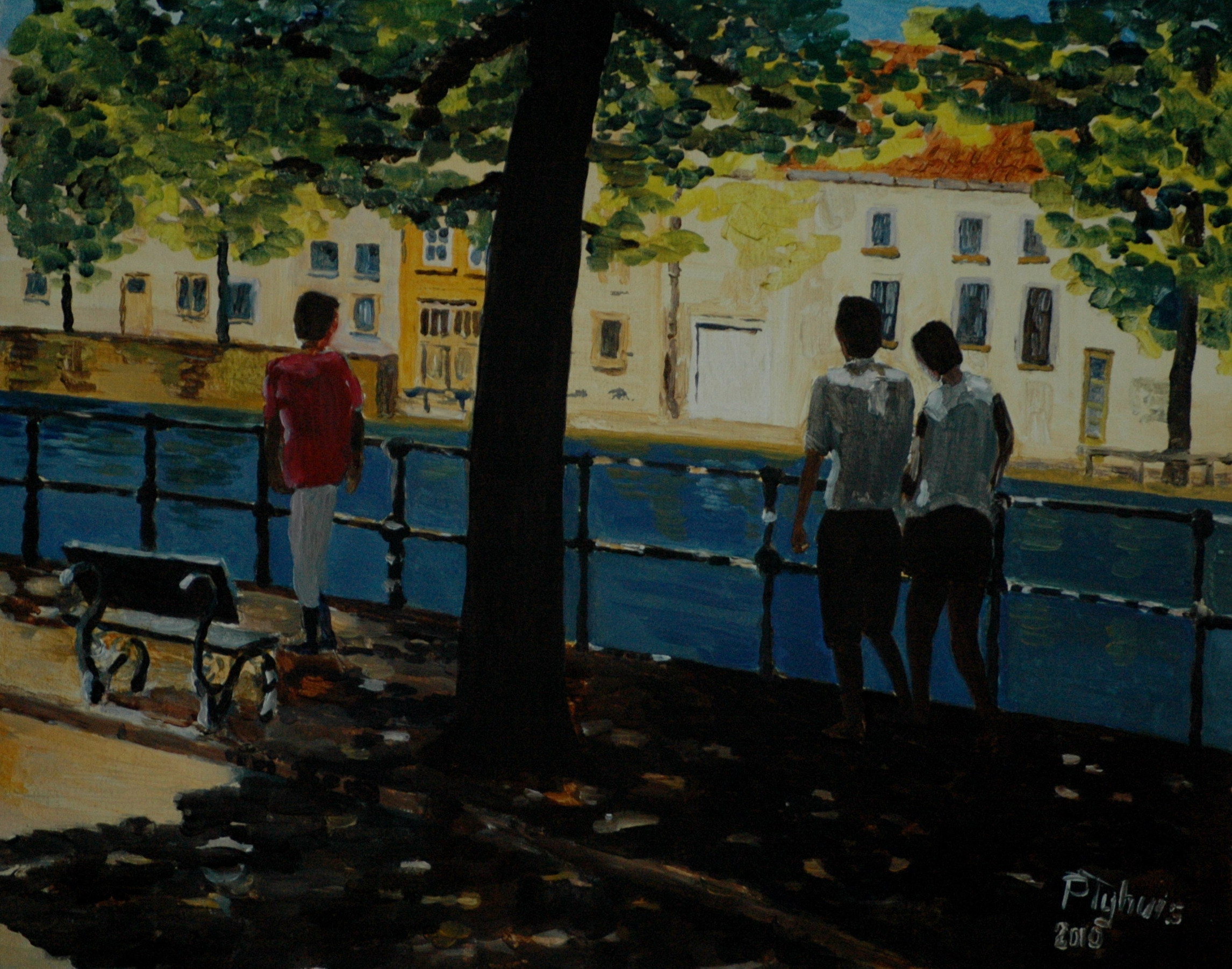 Olieverf 40 x 50 cm Wandeling door Brugge tijdens een vakantie in Cadzand-Bad.