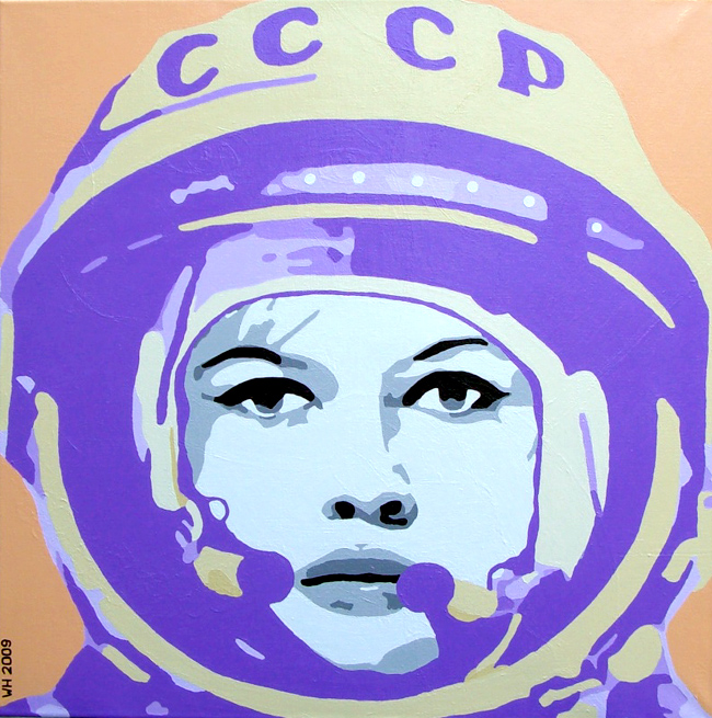 Brigitte Bardot als kosmonaut met de helm van Joeri Gagarin, de eerste mens in de ruimte (1961).