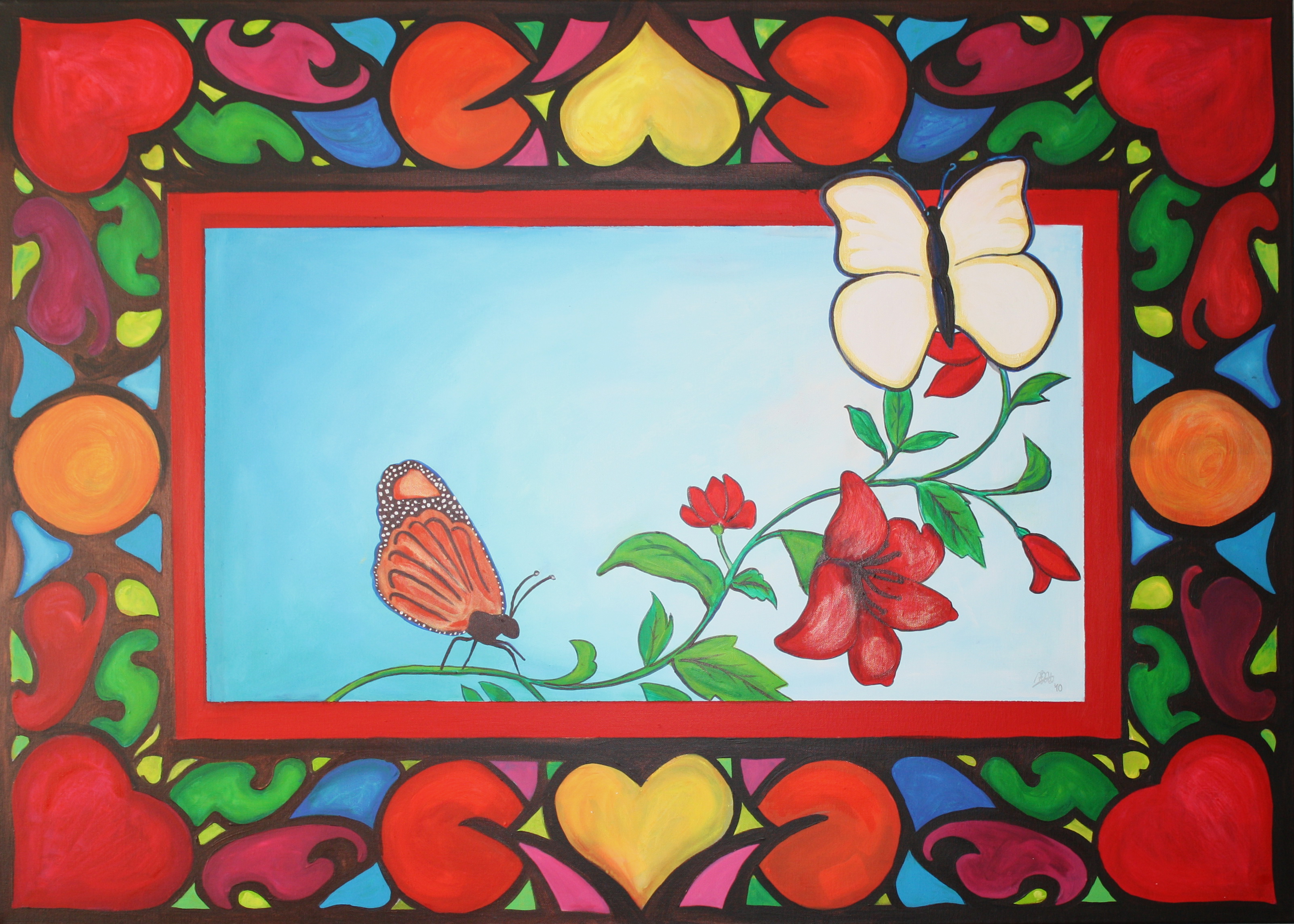 Hartverbintenissen verbreken niet bij de dood. Contact transformeert tot een vorm (hier vlinders) die toegang biedt tot alle werkelijkheden zoals 'Hemel' en 'Aarde'.