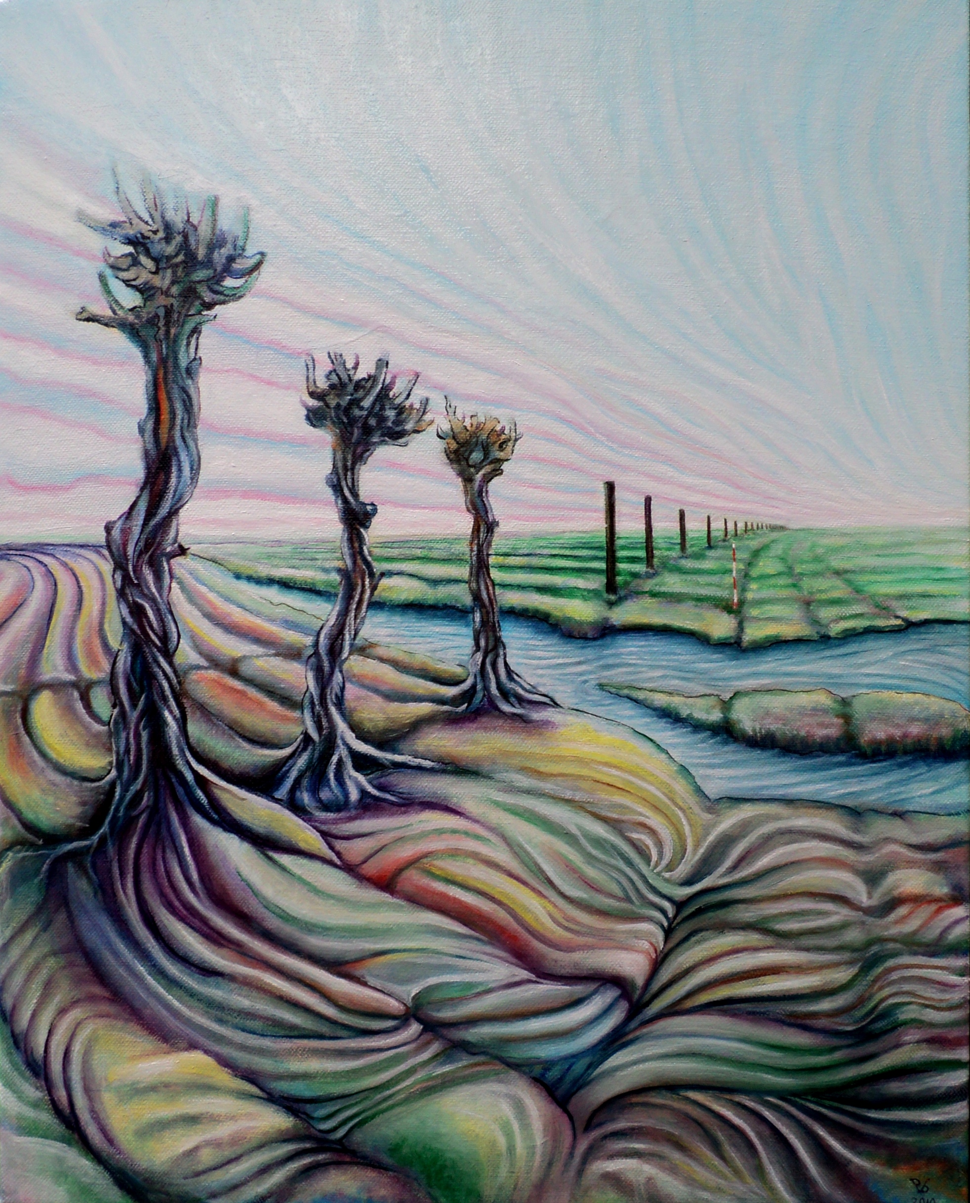 Bij wijze van spreken, doen, denken en ervaren, schilder ik (olieverf op doek en paneel) mijn spinsels. Mijn schilderstukjes zijn mijn buksjek, die ik gaandeweg verzameld heb. Zo is het ongeveer 50 jaar geleden (autodidact, 1947), ook begonnen: met een dood winterkoninkje, nog warm toen ik het vond. Het deed me beseffen dat er meer is dan een lichaam. En.. DAT gevoel is altijd gebleven..! Mijn werkjes verkoop ik (.. dus) niet graag... en exposeren doe ik zelden, ...maar alle dingen veranderen in de loop van de tijd... --- --- ---